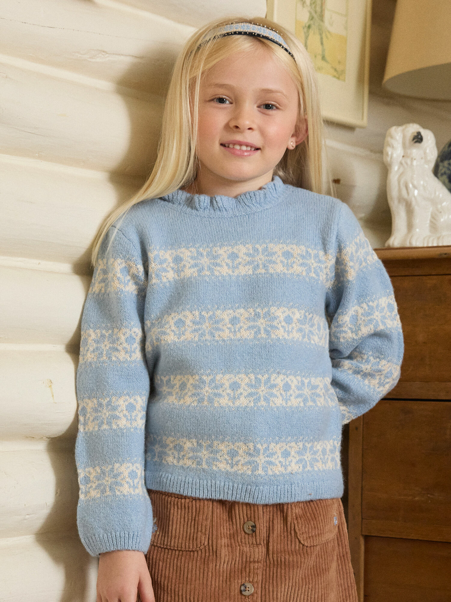 Conçu pour se démarquer, ce pull joue sur un jacquard raffiné et des détails subtils qui captivent le regard. Les bords-côtes aux manches, à l’encolure et au bas assurent un maintien parfait tout en offrant une grande liberté de mouvement. Parfait pour les occasions spéciales ou les journées décontractées, il s’intègre facilement à toutes les garde-robes enfantines.