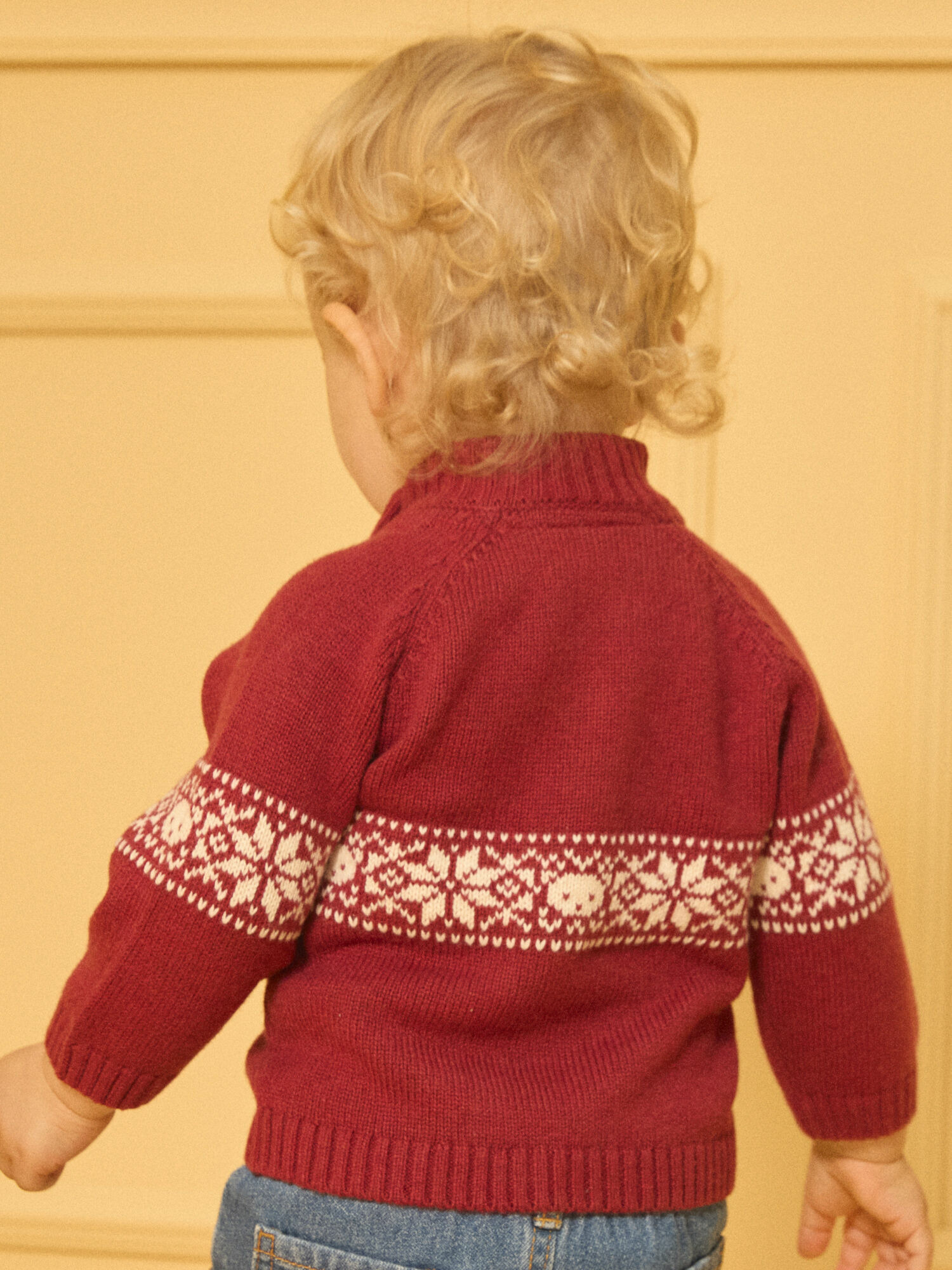 Confectionné en jacquard doux, ce pull met en scène un décor d’animaux et de flocons de neige sur l’avant, parfait pour éveiller la curiosité des enfants. Son col montant doublé en fourrure synthétique enveloppe délicatement le cou, tandis que les boutons en bois facilitent l’enfilage tout en apportant une note naturelle et chaleureuse. Idéal pour les journées cocooning, il s’intègre parfaitement à la collection Fruit confit à Varsovie.