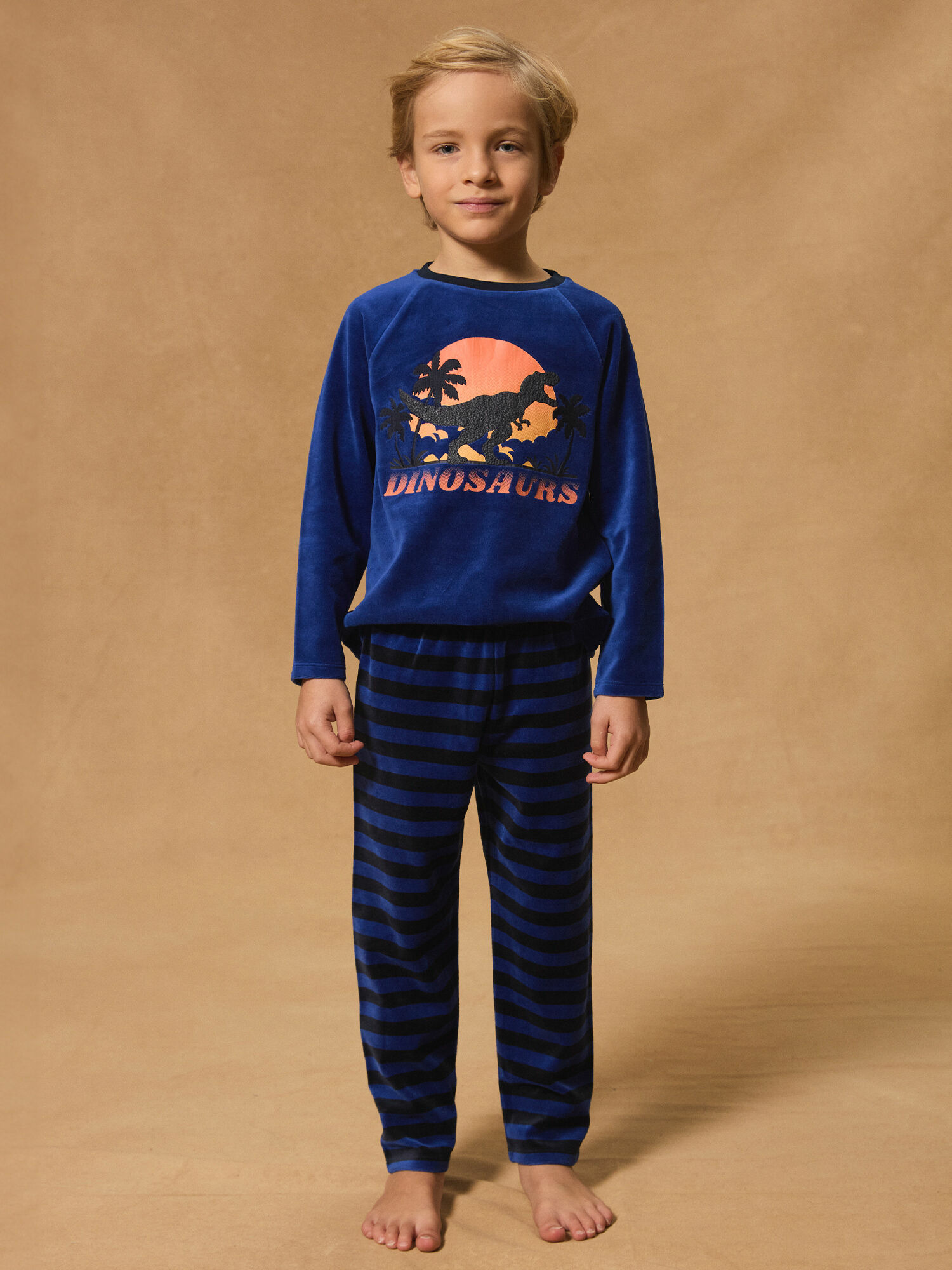 Offrez à votre enfant des nuits douces et pleines de rêves avec le pyjama Dino en velours Sergent Major. Un équilibre parfait entre confort et style pour les petits explorateurs.