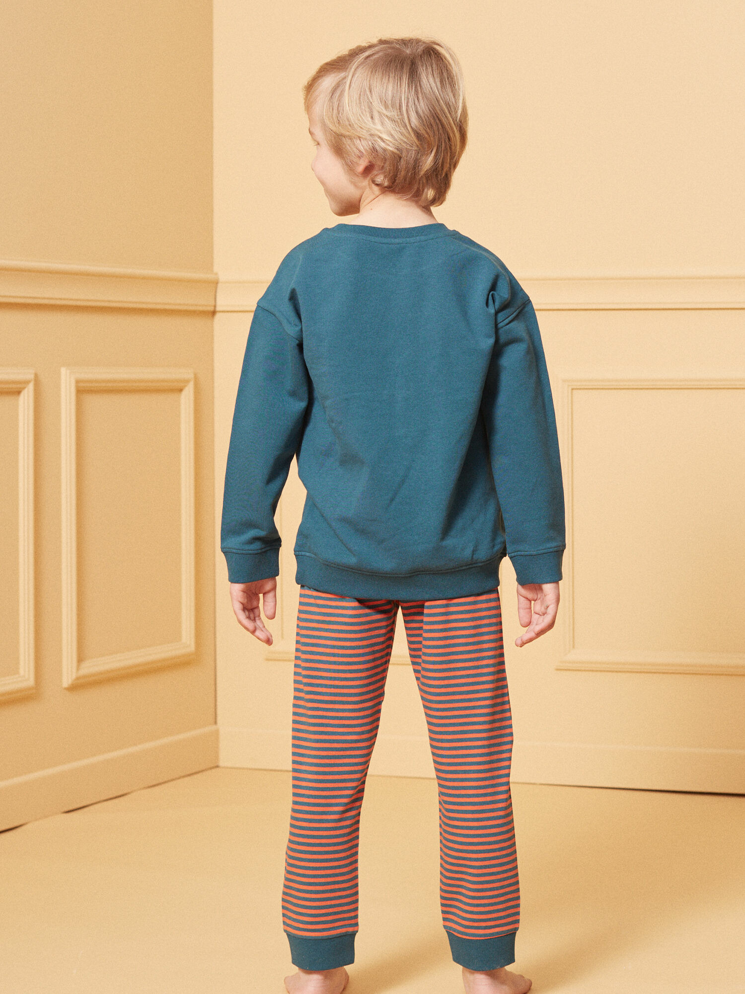 Confectionné dans un molleton gratté tout doux, ce pyjama enveloppe votre enfant d’une chaleur agréable sans surchauffer. L’imprimé délicat d’animaux de la forêt invite à la rêverie et à la découverte, tandis que le bas en jersey rayé apporte une touche moderne et ludique. Ce duo de matières garantit une liberté de mouvement optimale pour des nuits paisibles.
