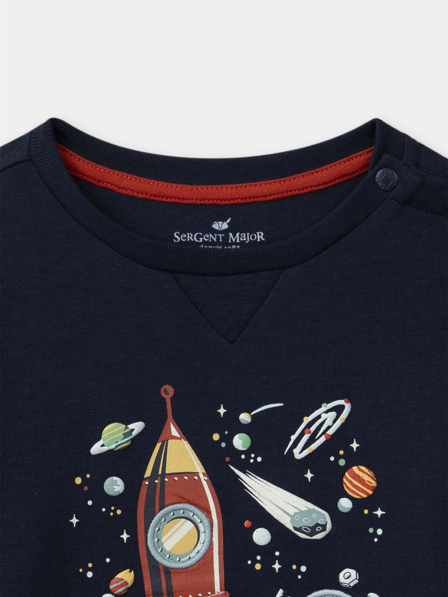 Offrez à votre enfant des nuits douces et pleines d’aventures avec le pyjama bleu marine Espace en Tubique de Sergent Major. Un design ludique et confortable qui invite au rêve et à la détente.