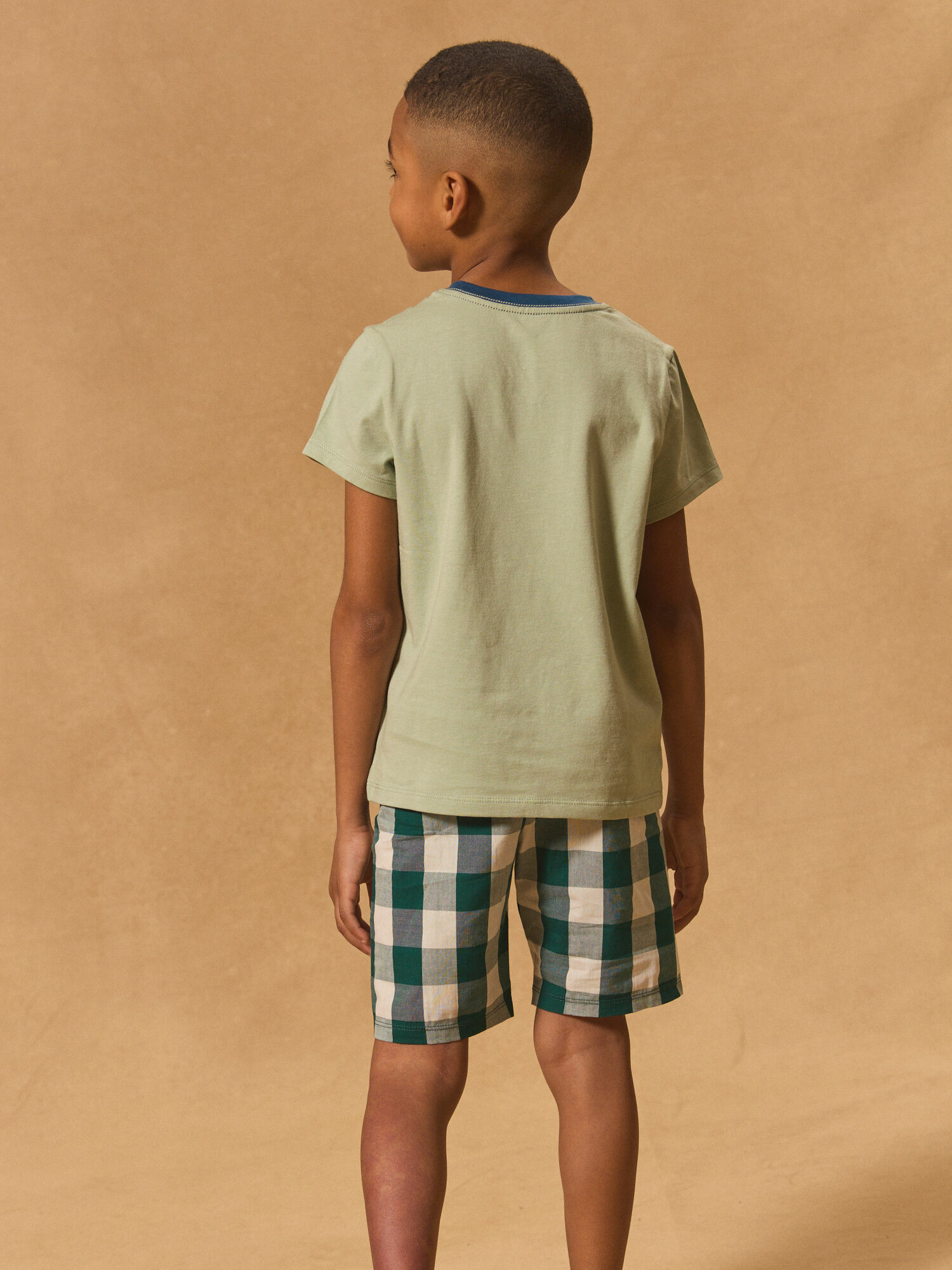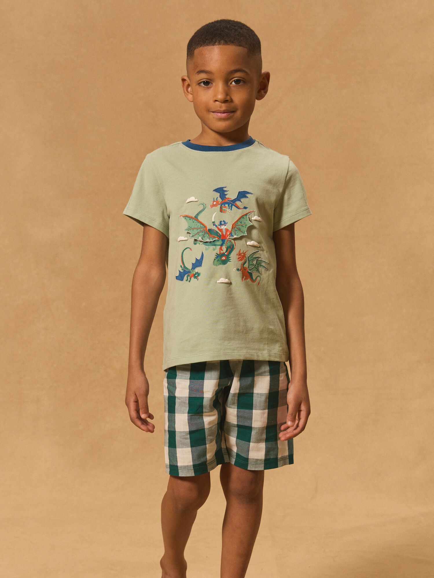 Short en popeline à carreaux, taille élastiquée, patch dragon. Produit issu de la collection Nuit. Pour plus d’informations sur ses qualités environnementales, consultez la fiche produit en ligne.