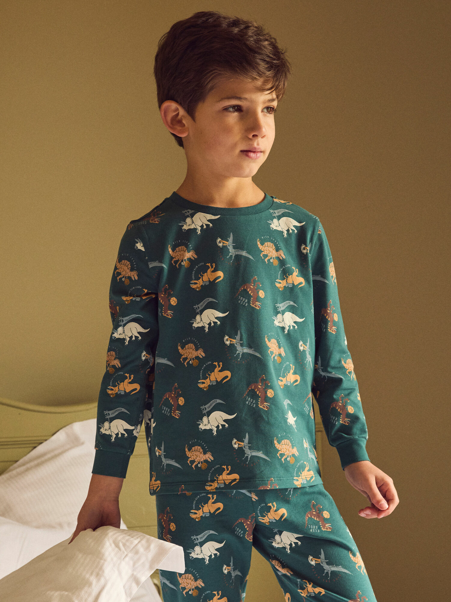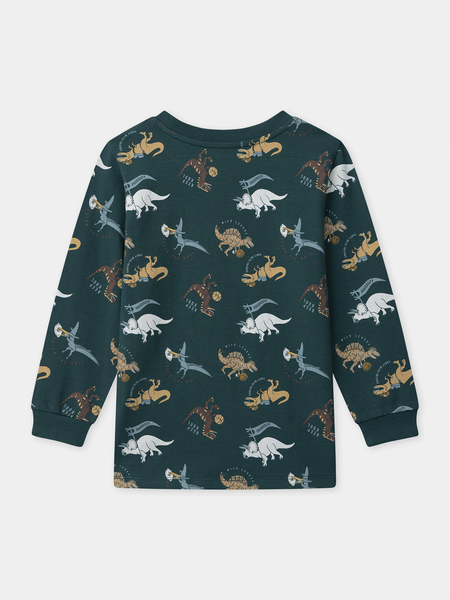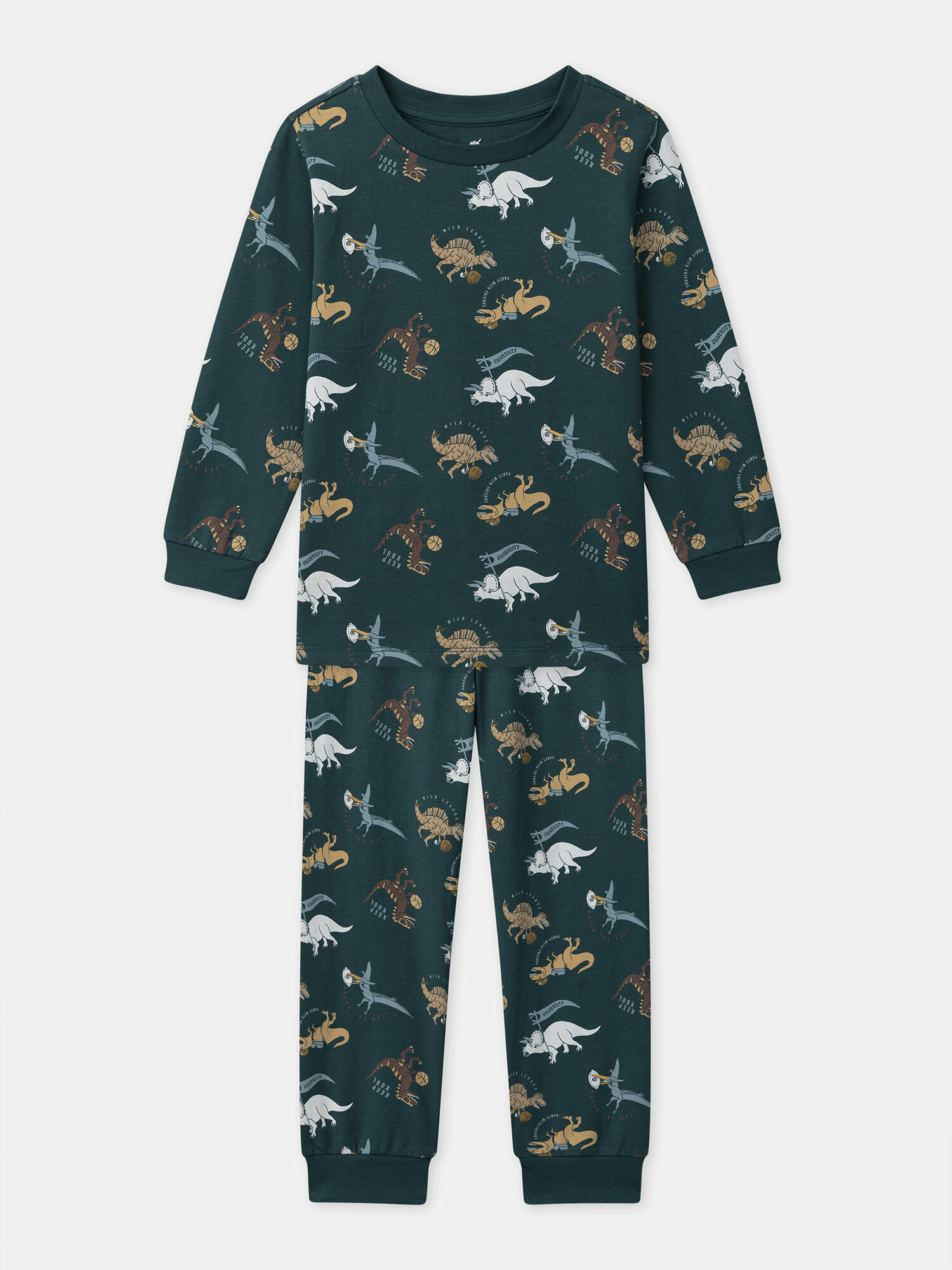 Fabriqué en jersey vert foncé à motifs dinosaures, ce pyjama fait partie de la collection Nuit de Sergent Major. Référence produit : NUIAVIAGE / 25H5PGB1PYJ001. Pour plus d’informations sur ses qualités et caractéristiques environnementales, veuillez consulter la fiche produit dédiée.
