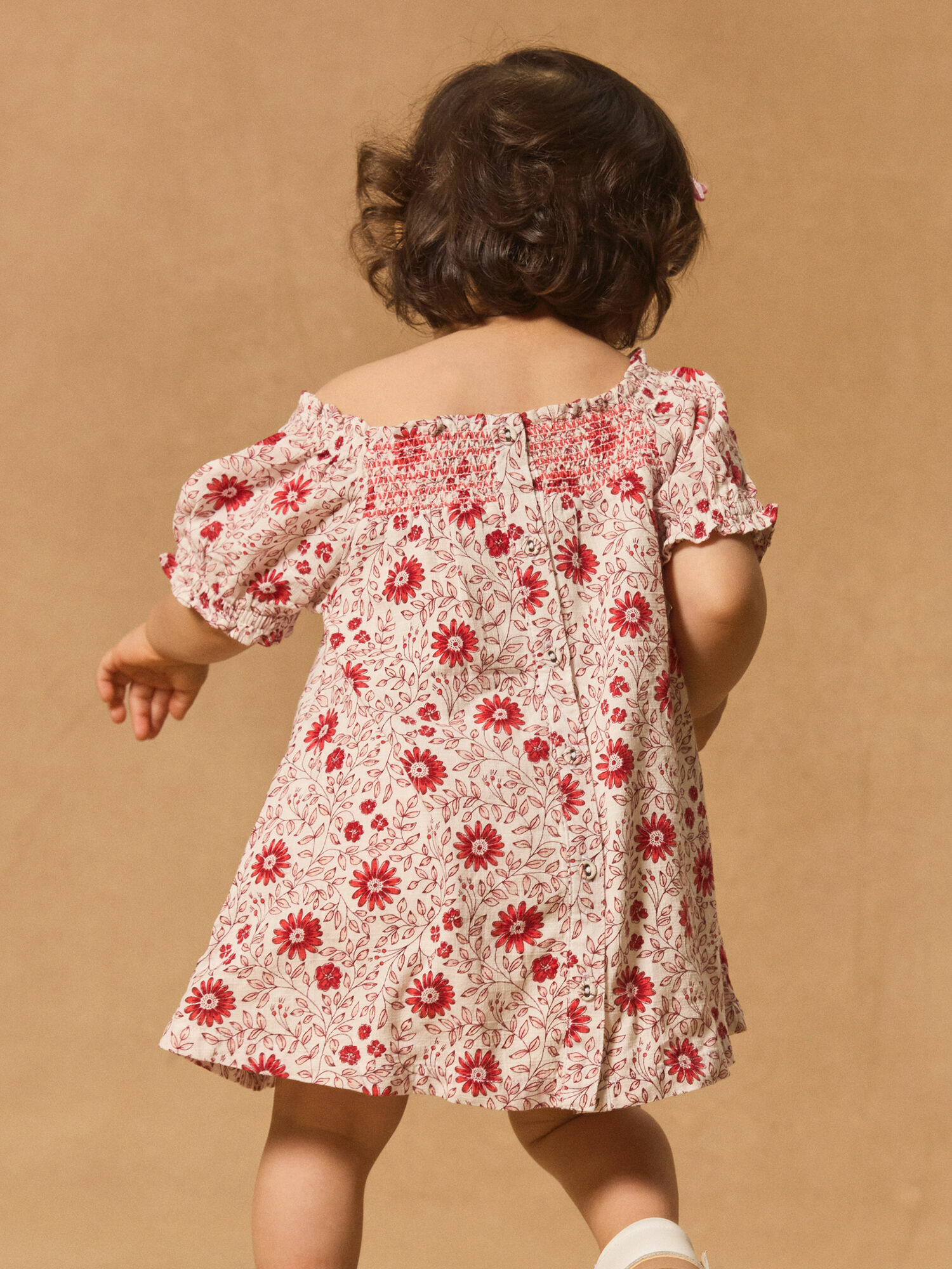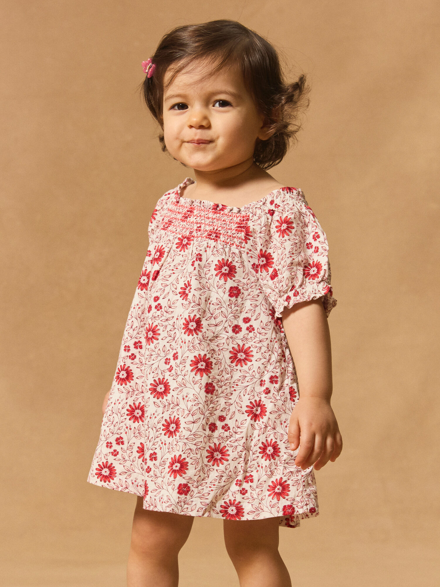 Laissez-vous séduire par cette robe à smock fleuri, idéale pour illuminer les journées ensoleillées avec élégance et confort. Son imprimé délicat de fleurs roses claires et rouges sur fond écru apporte une touche fraîche et raffinée à la garde-robe de votre enfant.