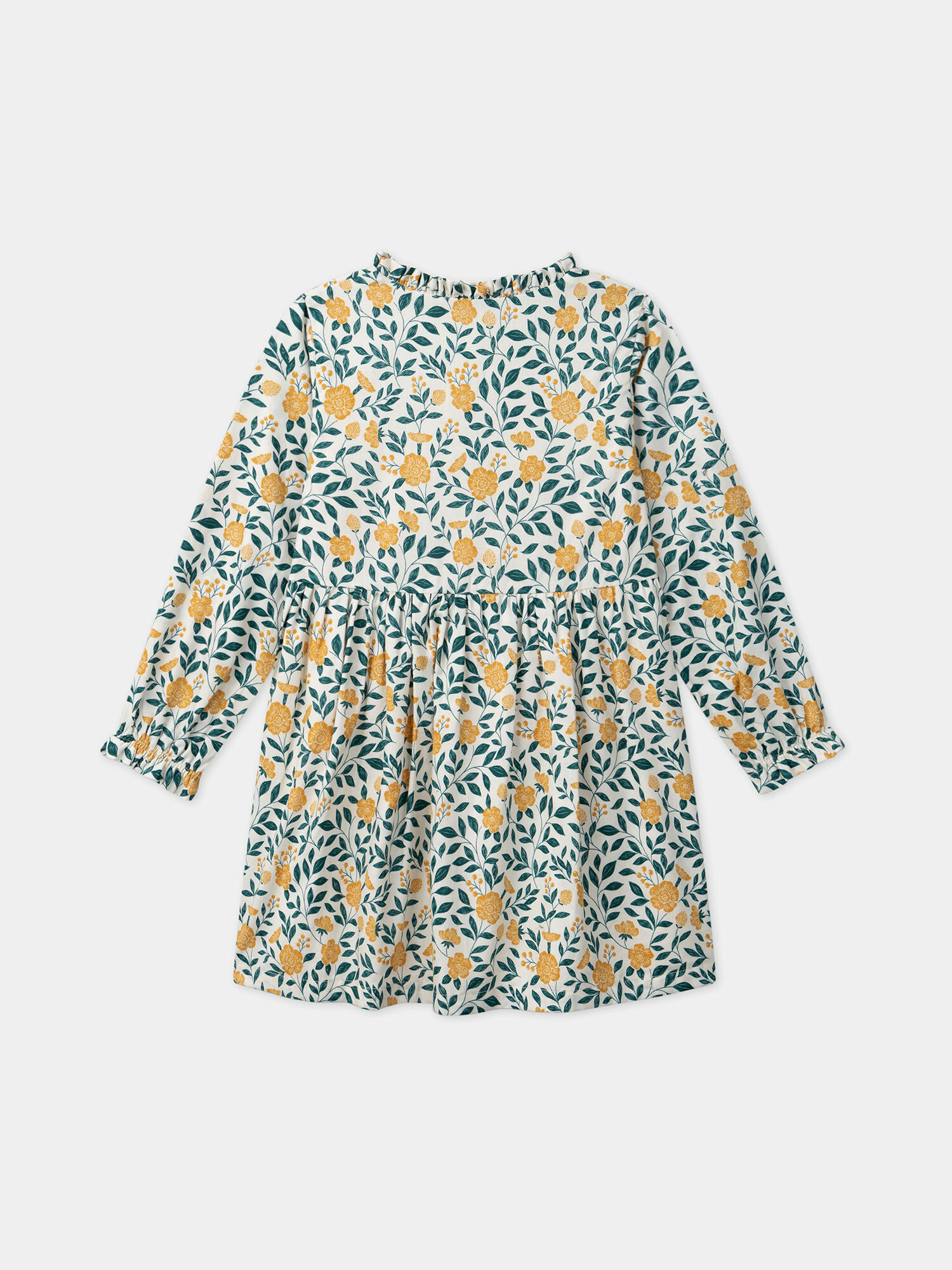 Cette robe fait partie de la Collection Marmelade à Edimbourg, taille 6, référence LYROBETTE / 24H2PFO1ROB632. Elle est réalisée en twill imprimé fleurs, avec mini volants à l’encolure, bas de manches élastiqués et doublure en coton.