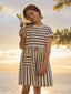 Fabriquée en coton doux et respirant, cette robe présente un col marin classique, des manches courtes et une fermeture discrète au dos pour un enfilage facile. Disponible en plusieurs tailles, elle répond aux besoins des filles de différents âges.