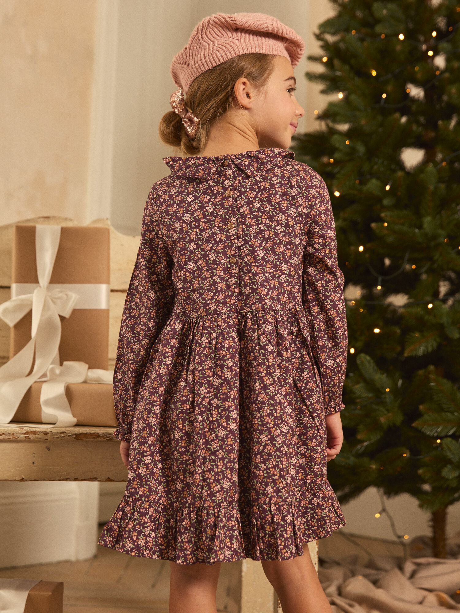 Question ? Comment s’habille-t-elle ? Réponse. La robe se ferme facilement grâce aux boutons-pressions au dos, facilitant l’habillage sans effort.