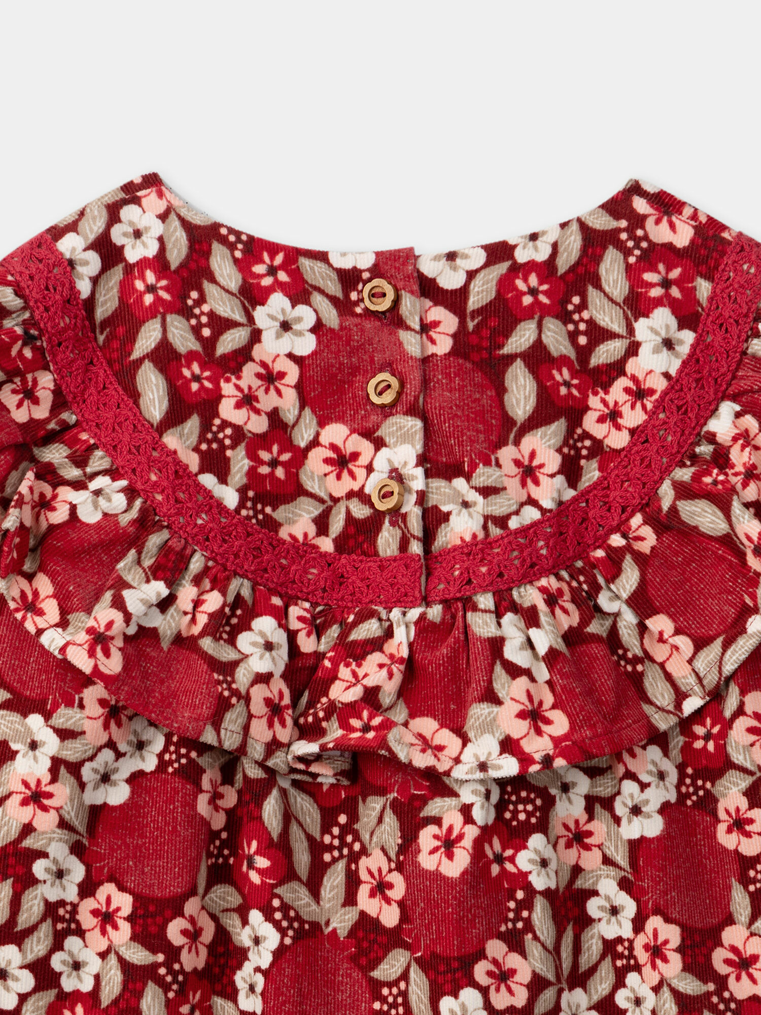Robe en velours côtelé doublée en coton. Volants à l’encolure, détails ajourés aux manches et au col. Bas de manches élastiqués pour un maintien optimal. Issue de la collection Fruit confit à Varsovie. Référence produit : LALOUNETTE / 24H2PFR2ROBF506.