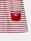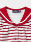 Réponse : Ce modèle est proposé dans le classique motif rayé bleu et blanc, signature du style marin Sergent Major.
