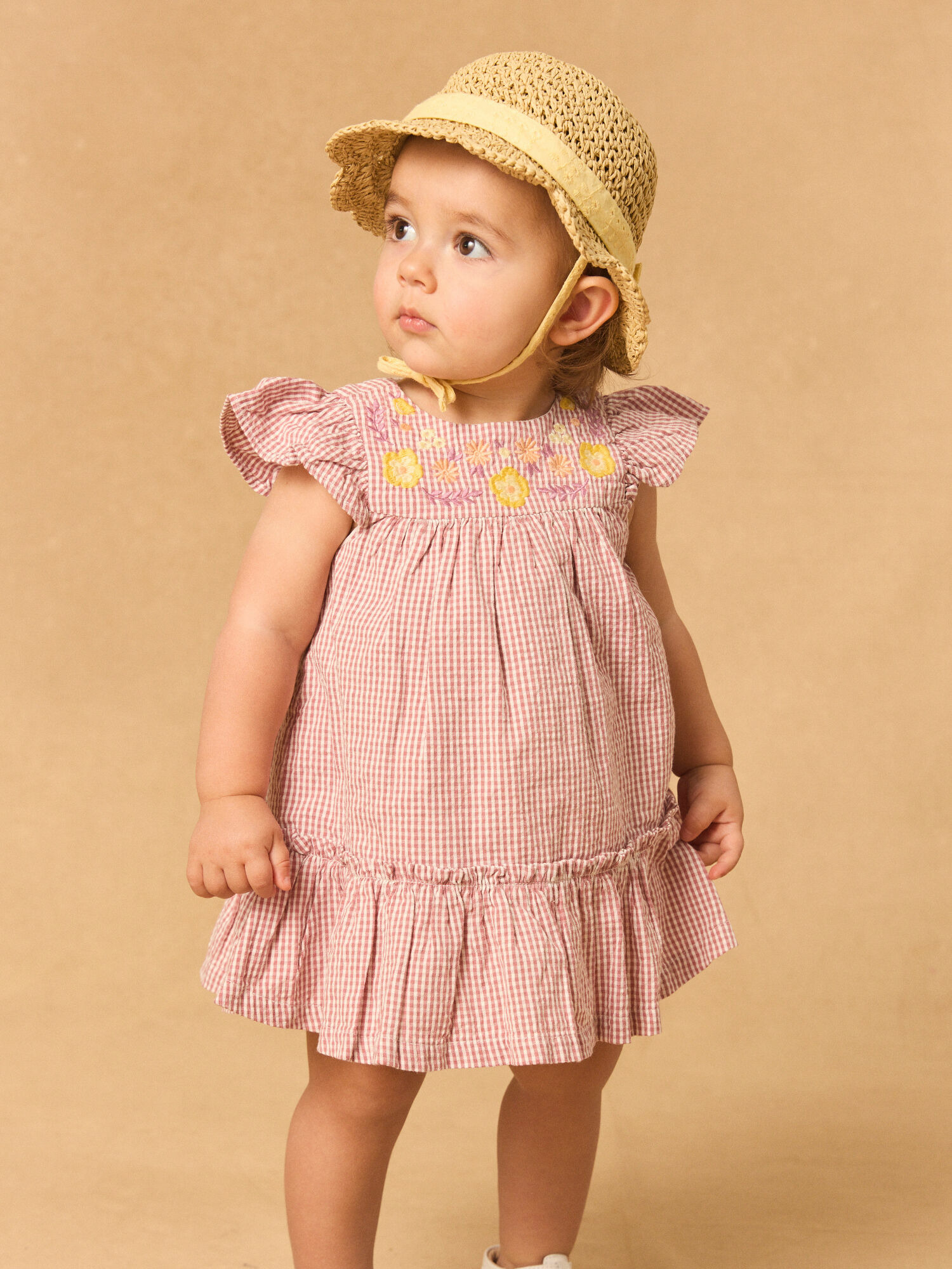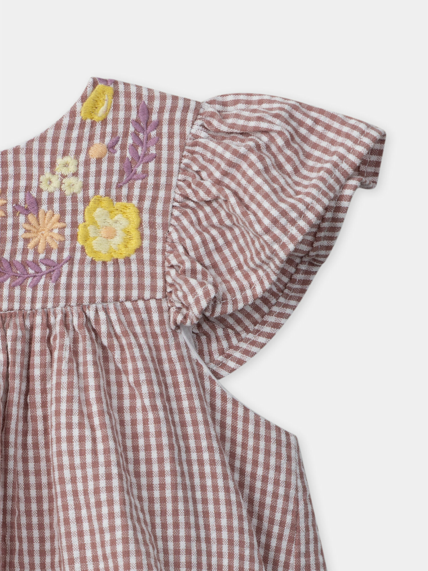 Légère et pleine de fraîcheur, cette robe vichy incarne l’élégance estivale pour les petites filles. Son buste délicatement brodé de fleurs colorées et son volant subtil apportent une touche de douceur et de charme.