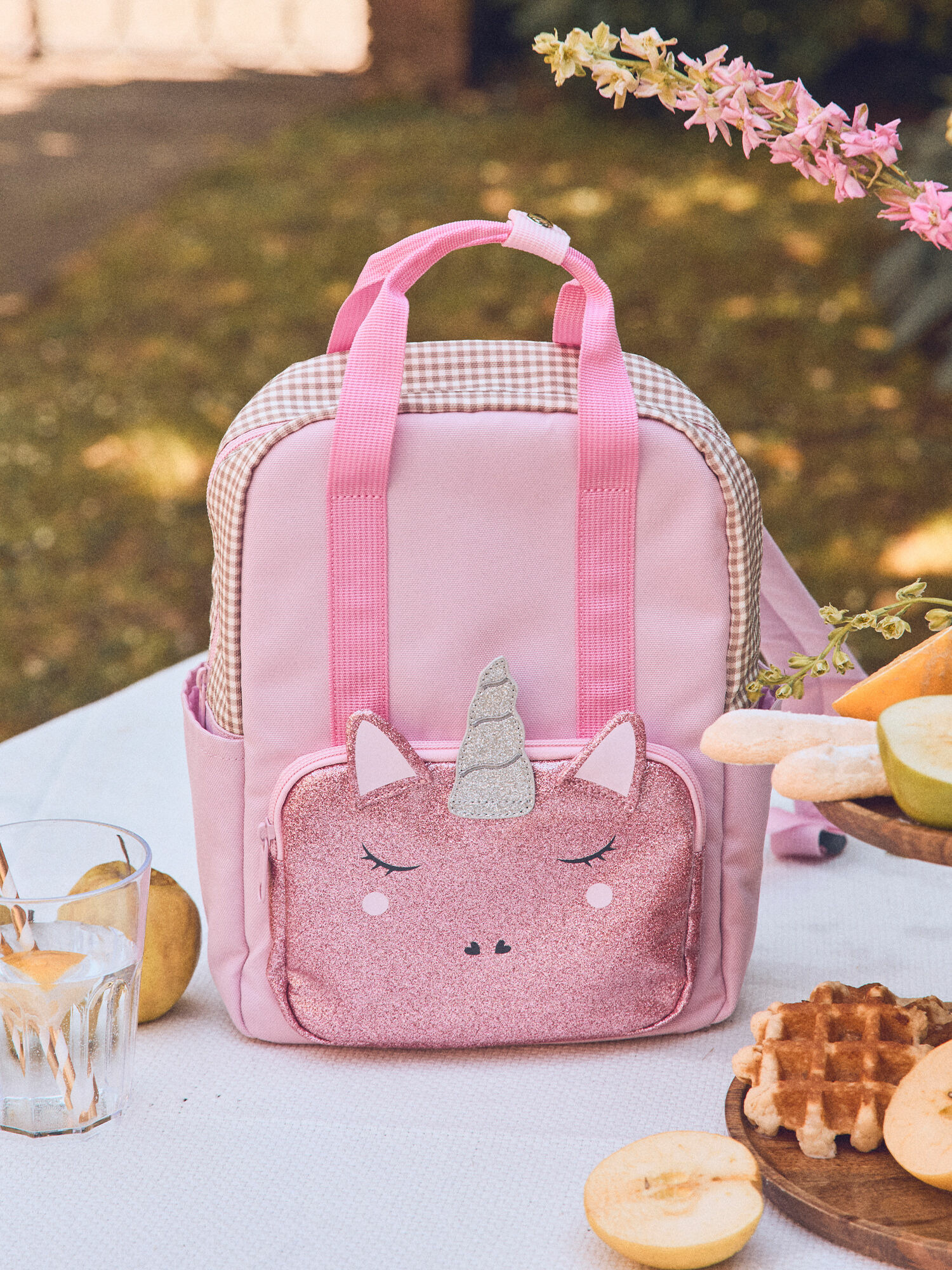 Ce sac accompagne parfaitement les sorties scolaires ou les escapades en famille, en offrant un espace de rangement optimisé et un design qui plaira aux enfants. La poche avant pailletée avec visage, oreilles et corne de licorne en relief ajoute une dimension ludique et tendance, renforçant l’attachement à cet accessoire.