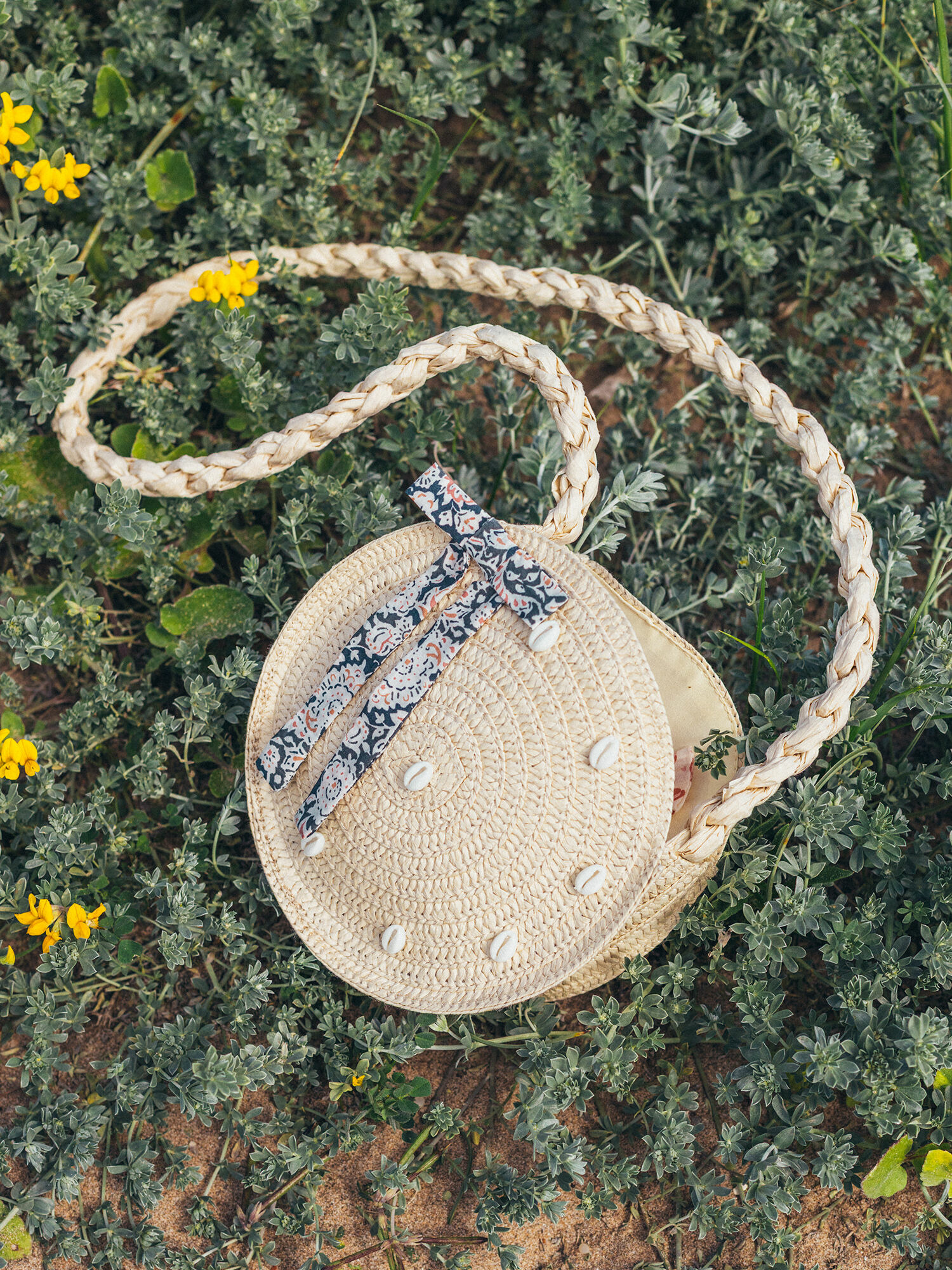 Confectionné en paille beige claire, ce sac se distingue par ses petits coquillages blancs délicatement posés sur le devant, évoquant une ambiance bord de mer. Sa bandoulière tressée, ornée d’un nœud à imprimé fleuri, ajoute une note féminine et originale. Compact mais pratique, il accompagne vos journées avec légèreté et charme.