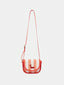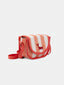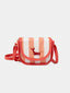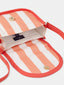 Dimensions et composition : sac en toile rayée corail et écru, bandoulière réglable, fermeture zippée pour plus de sécurité.