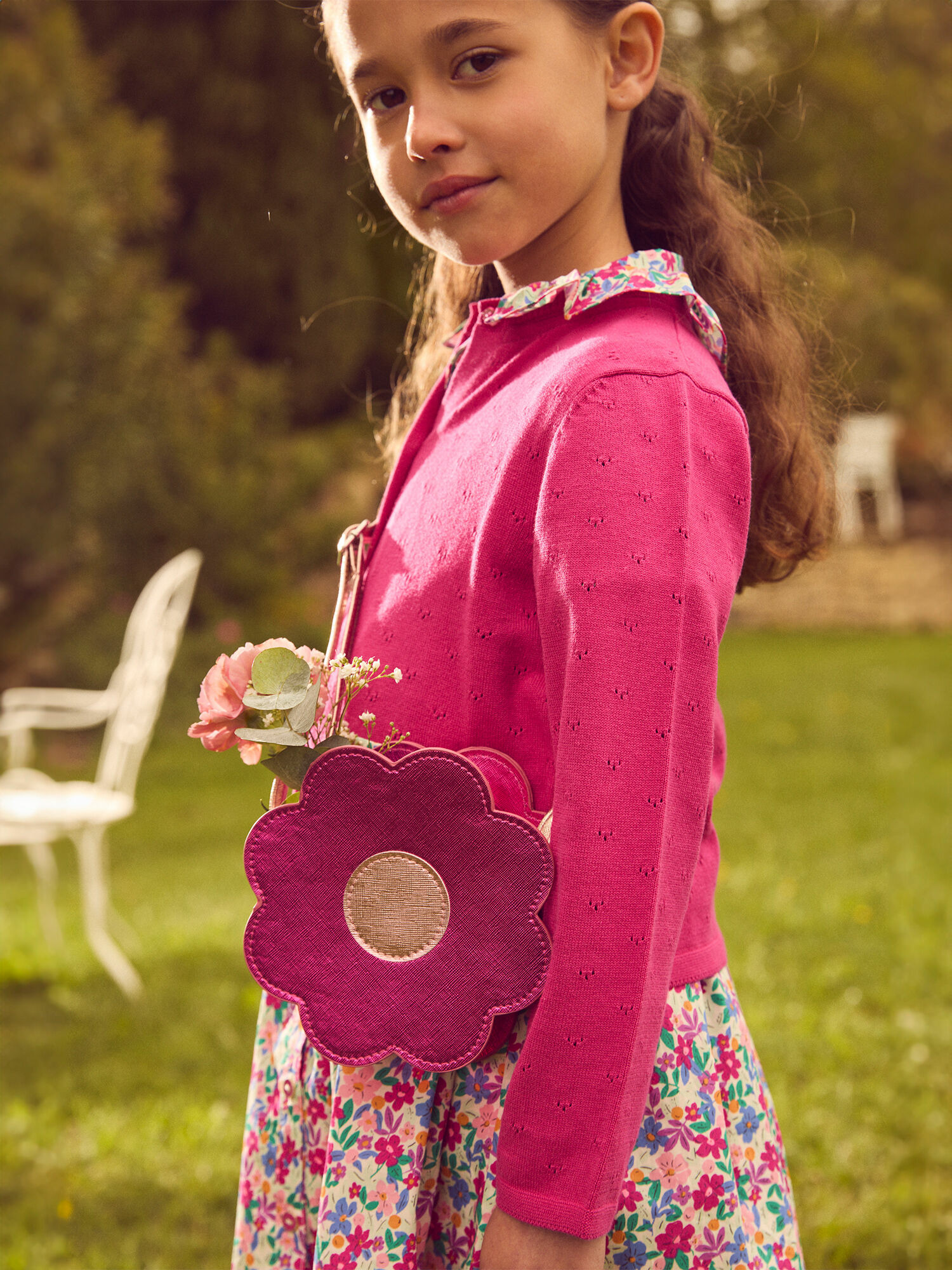 Un sac qui fait pétiller le quotidien des petites rêveuses avec sa forme fleur délicate et son éclat nacré. Élégance et praticité s’unissent dans un accessoire unique, pensé pour accompagner chaque moment avec style.