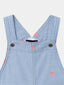 Conçue pour allier confort et style, cette salopette légère met en valeur la douceur du coton tout en offrant une liberté de mouvement idéale pour les premiers pas et jeux. Les rayures bleues apportent une note classique tandis que les broderies florales ajoutent un charme artisanal, faisant de cette pièce un incontournable du dressing bébé.