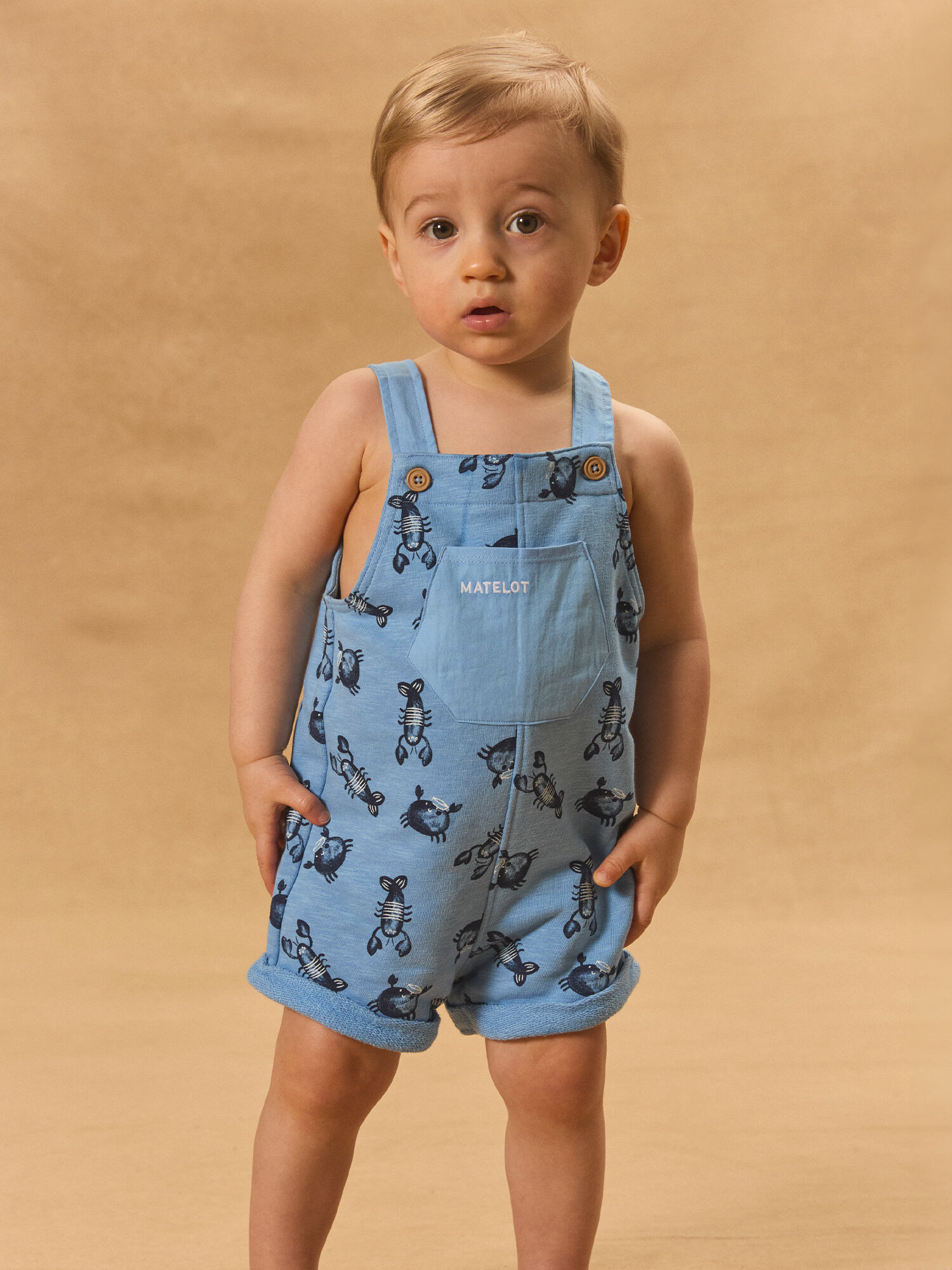 Prêt pour les aventures estivales, votre petit matelot adopte un style marin unique avec cette salopette courte imprimée homards et crabes. Confortable et pratique, elle accompagne chaque mouvement avec légèreté et charme.