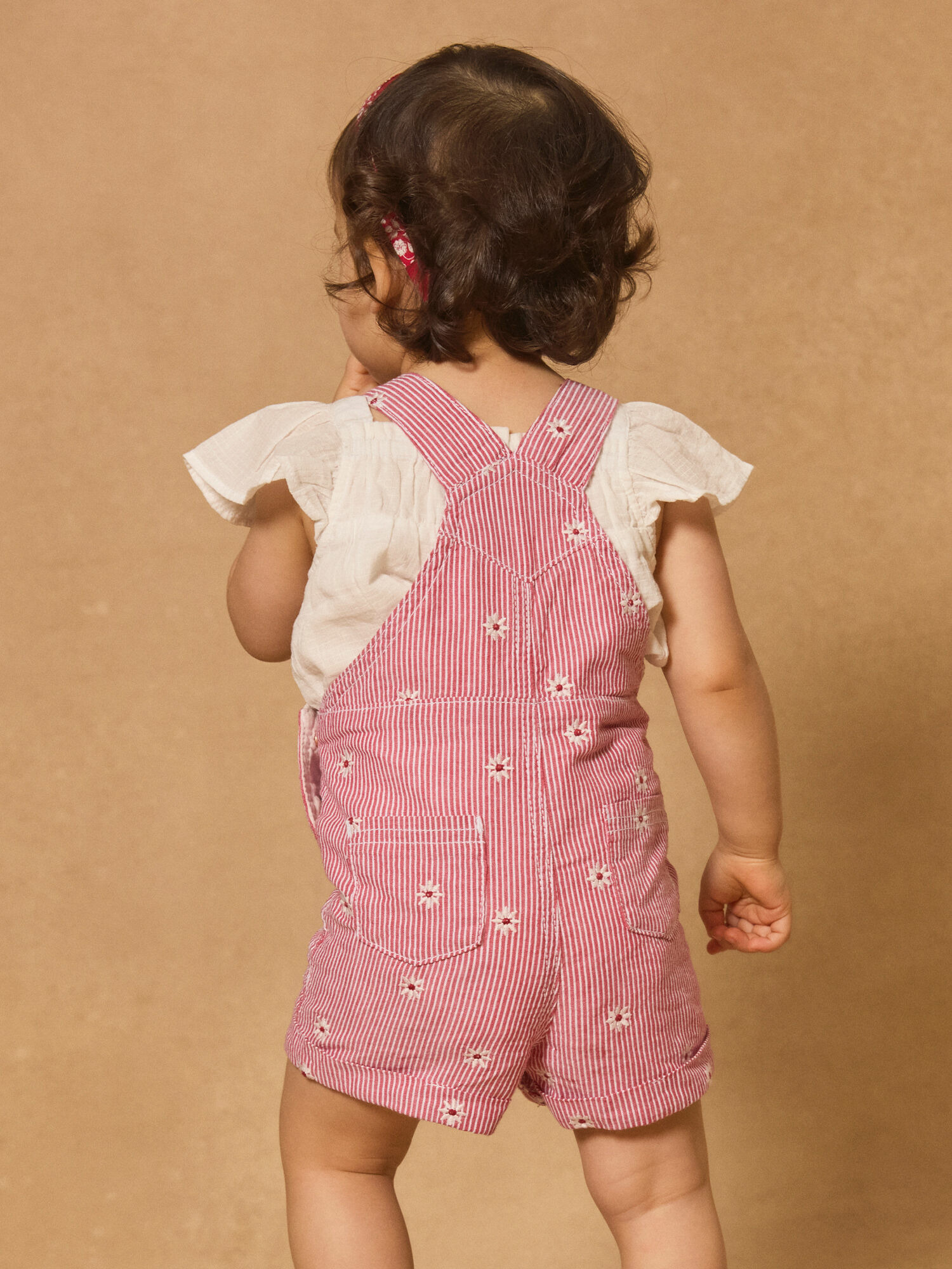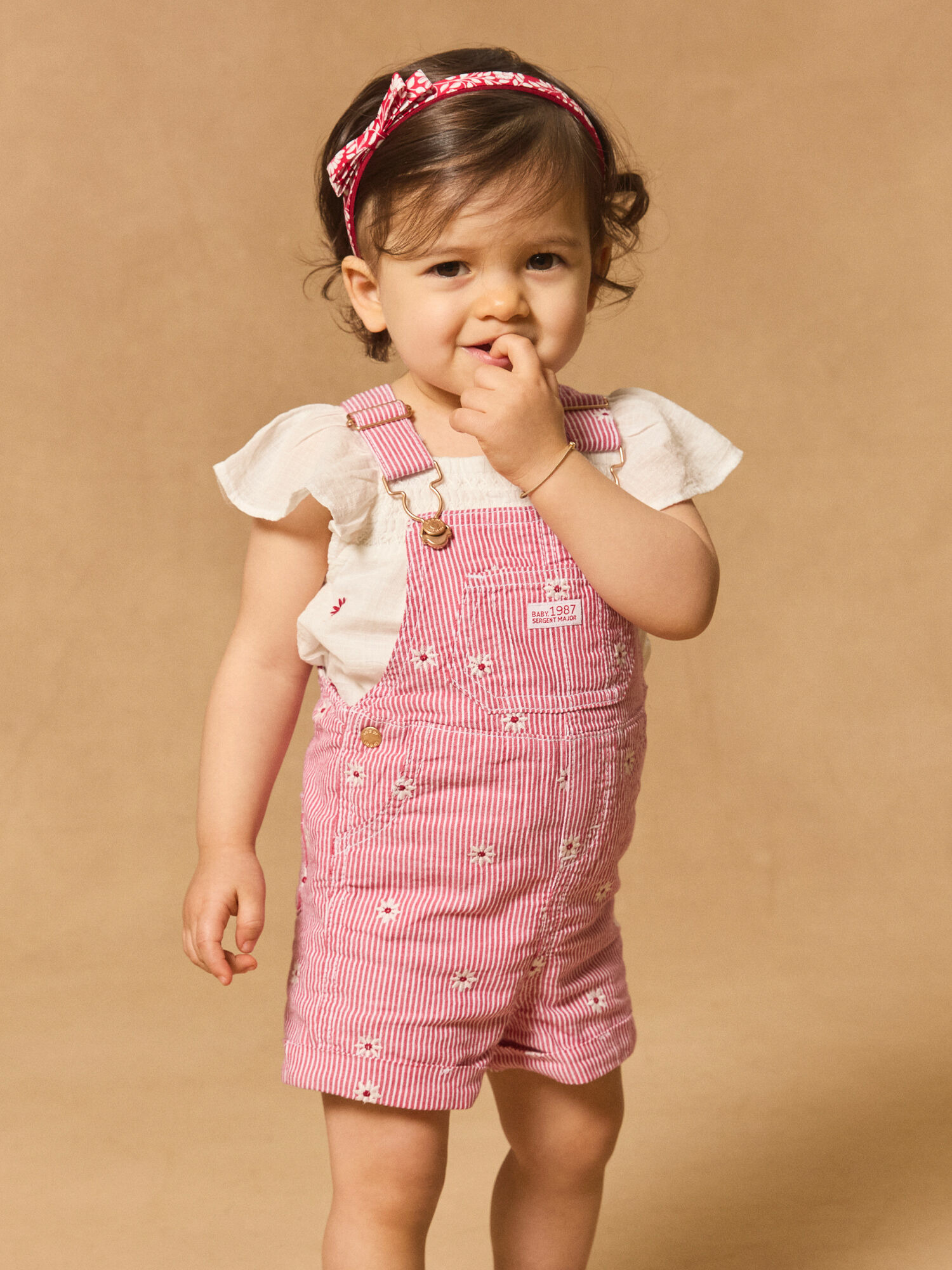 Conçue pour accompagner les mouvements des enfants, cette salopette allie un motif rayé intemporel à des broderies florales raffinées qui apportent charme et fraîcheur. La poche plaquée sur le buste, rehaussée d’une vignette tissée "Baby 1987 Sergent Major", souligne l’authenticité de la pièce tout en offrant un espace de rangement discret. Les bretelles ajustables et l’ouverture à boutons pression facilitent l’habillage, tandis que les poches avant et arrière ajoutent une dimension fonctionnelle à ce vêtement déjà très séduisant.