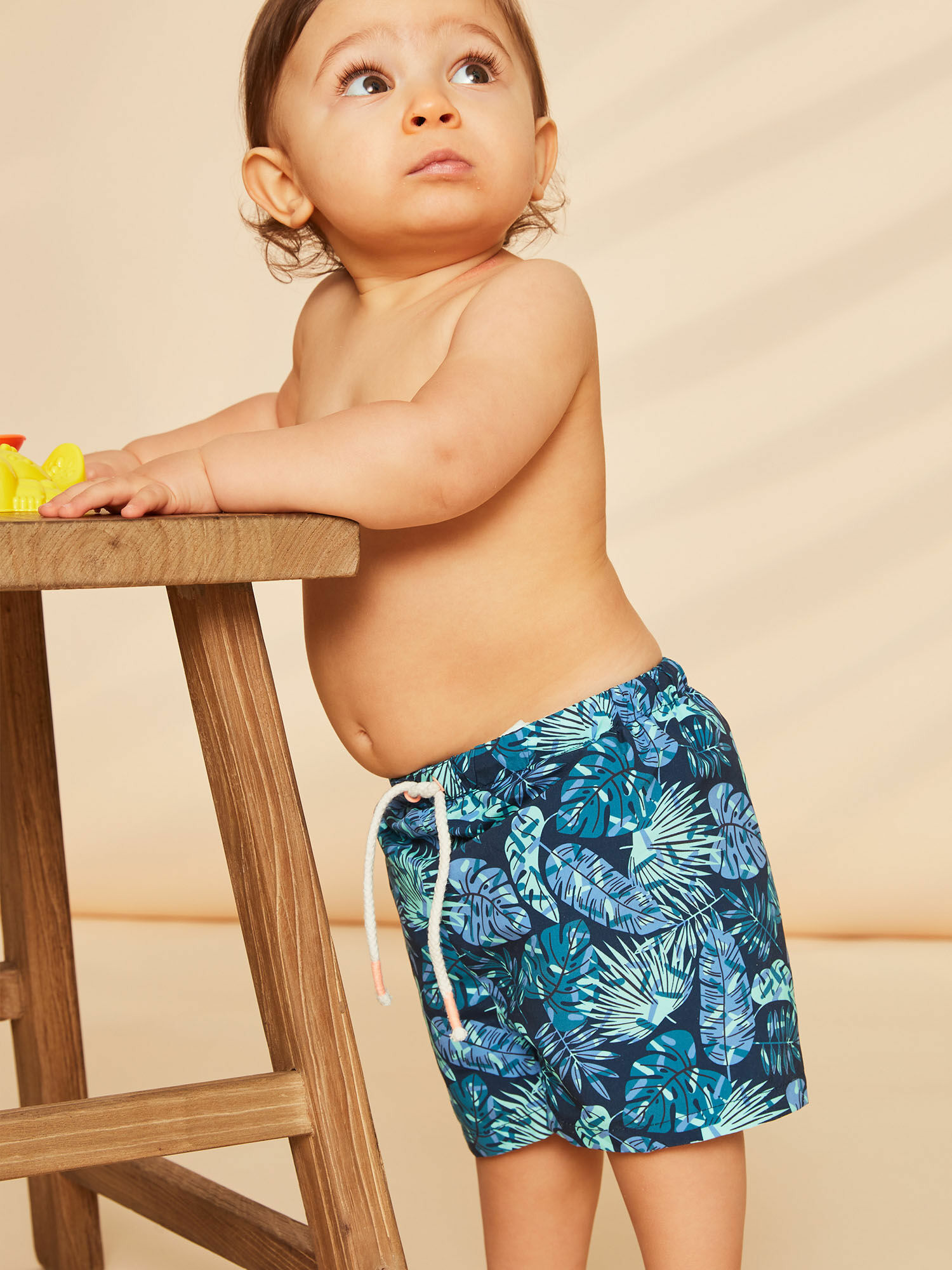 Conçu pour les jeunes aventuriers, ce short de bain joue sur un contraste élégant entre le bleu marine profond et le vert feuillage, évoquant la nature et l’évasion. Sa coupe confortable et sa doublure en maillage assurent une liberté de mouvement optimale, idéale pour toutes les activités aquatiques ou les moments de farniente au soleil.
