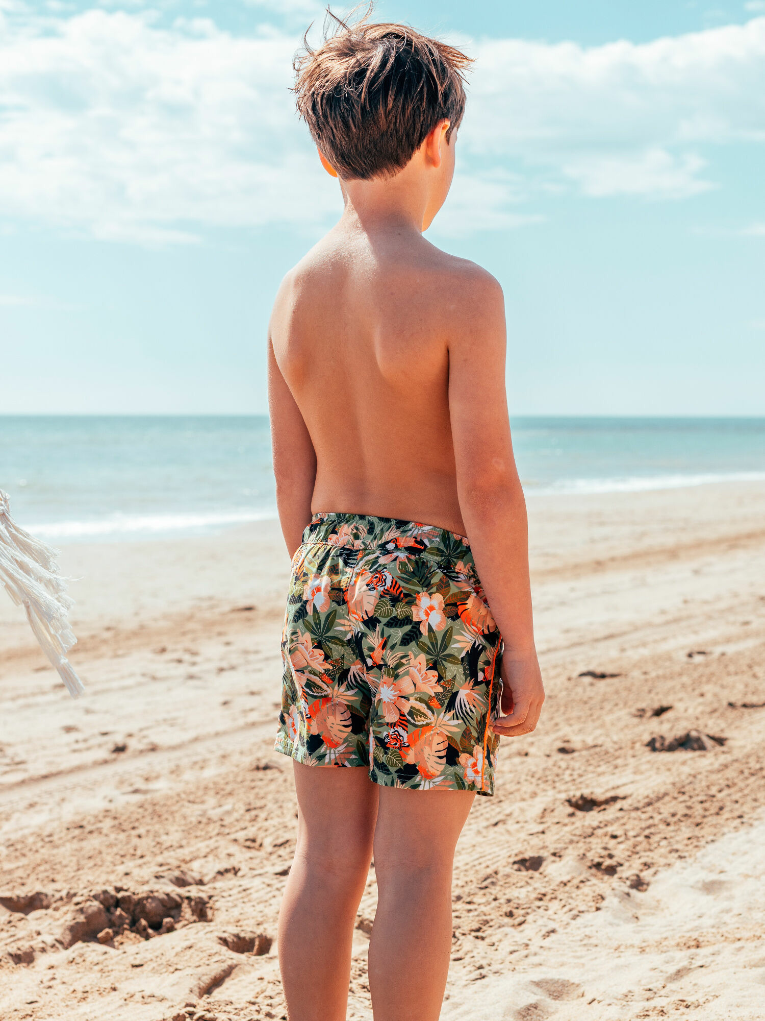 Conçu pour les jeunes aventuriers, ce short de bain Sergent Major se distingue par son imprimé jungle vibrant et son cordon néon ajustable qui assure un maintien parfait. La taille élastiquée garantit une liberté de mouvement optimale, tandis que le filet intérieur apporte un soutien discret et confortable. Idéal pour les journées ensoleillées, il s’intègre parfaitement à la collection Plage pour un style estival affirmé.
