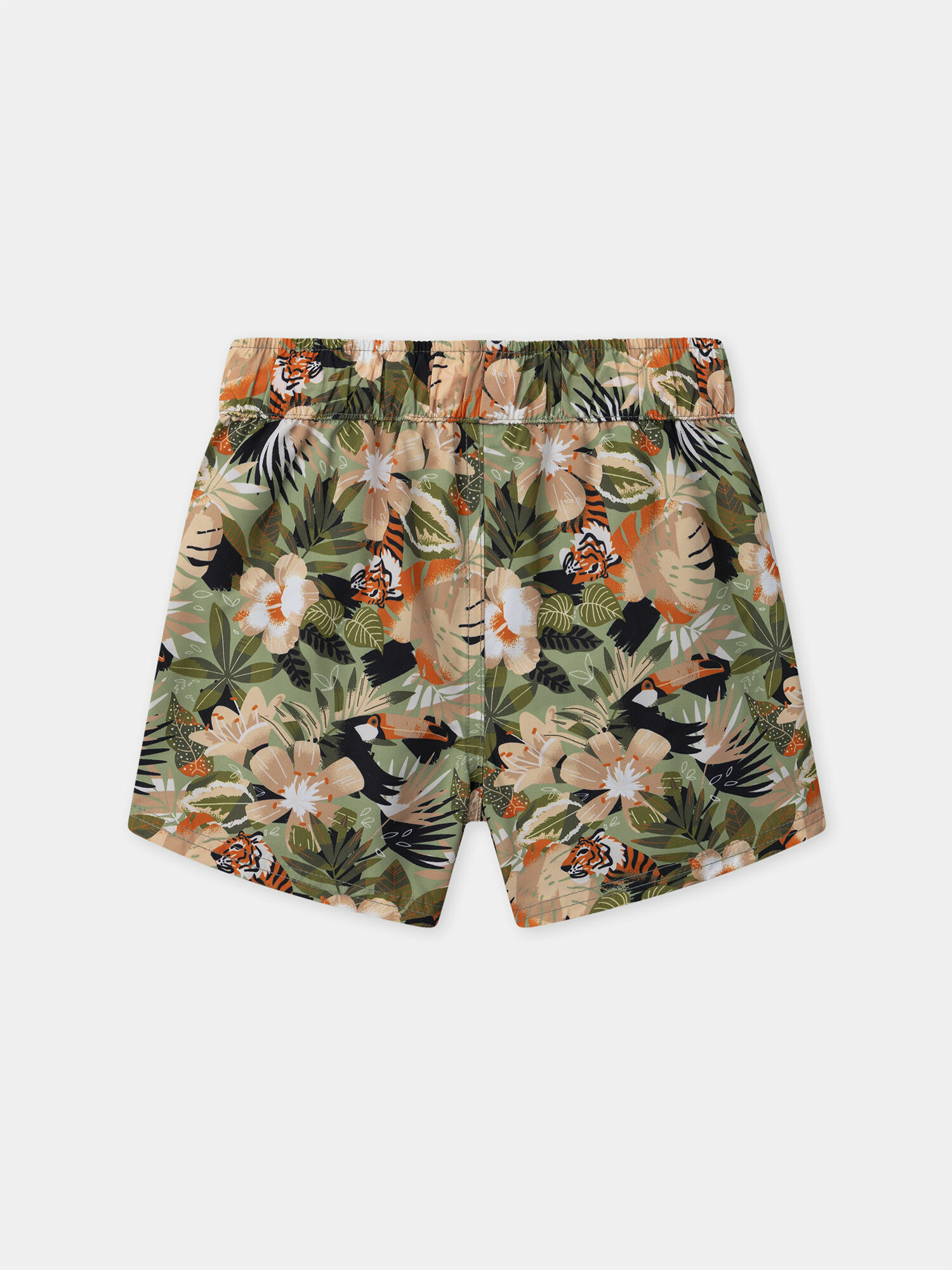 Ce short de bain est doté d’un imprimé jungle dans des tons verts et oranges, d’un cordon néon ajustable à la taille, d’une taille élastiquée et d’un filet intérieur pour un confort optimal. Il appartient à la collection Plage de Sergent Major. Pour plus d’informations sur ses qualités environnementales, consultez la fiche produit dédiée.
