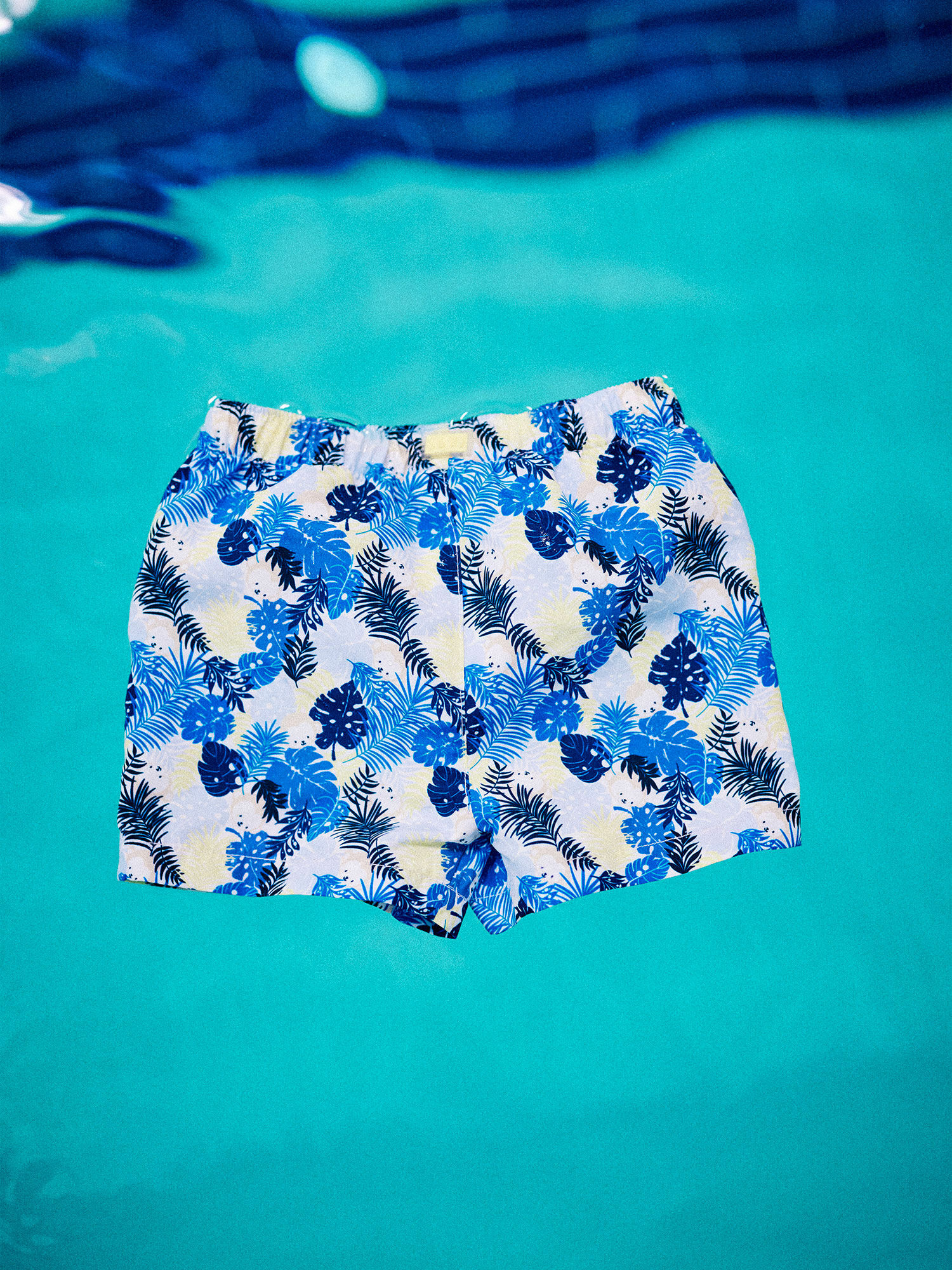 Taille élastiquée avec cordon de serrage pour un ajustement personnalisé. Short mi-cuisse à imprimé feuilles, conçu pour un usage plage et loisirs. Marque Sergent Major, référence CILEO / 22E4BGO1MAI701.