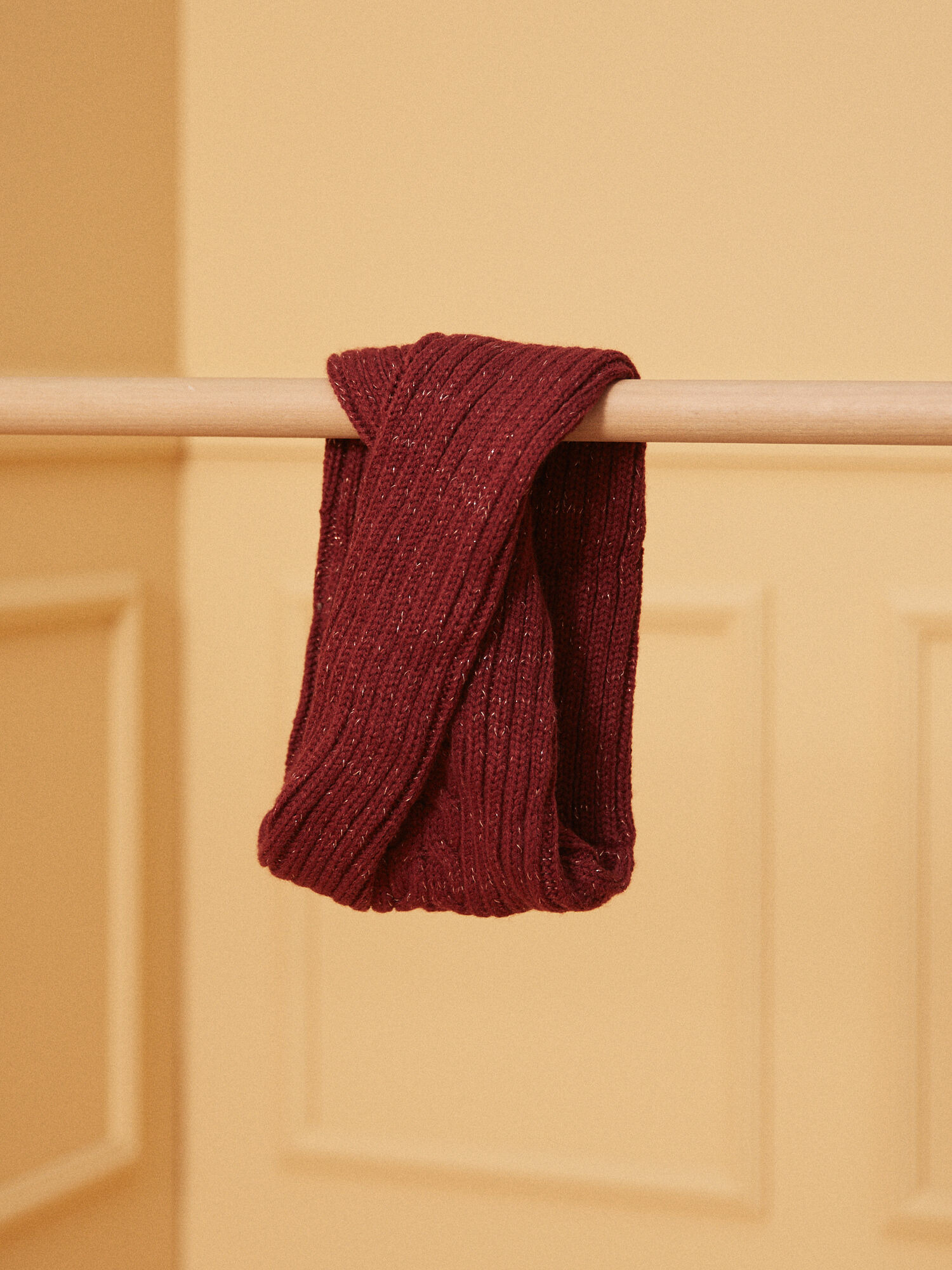 Offrez à votre enfant une touche d’élégance et de chaleur avec ce snood en maille fantaisie bordeaux. Son fil argenté subtilement brillant illumine les tenues hivernales tout en assurant un confort optimal.