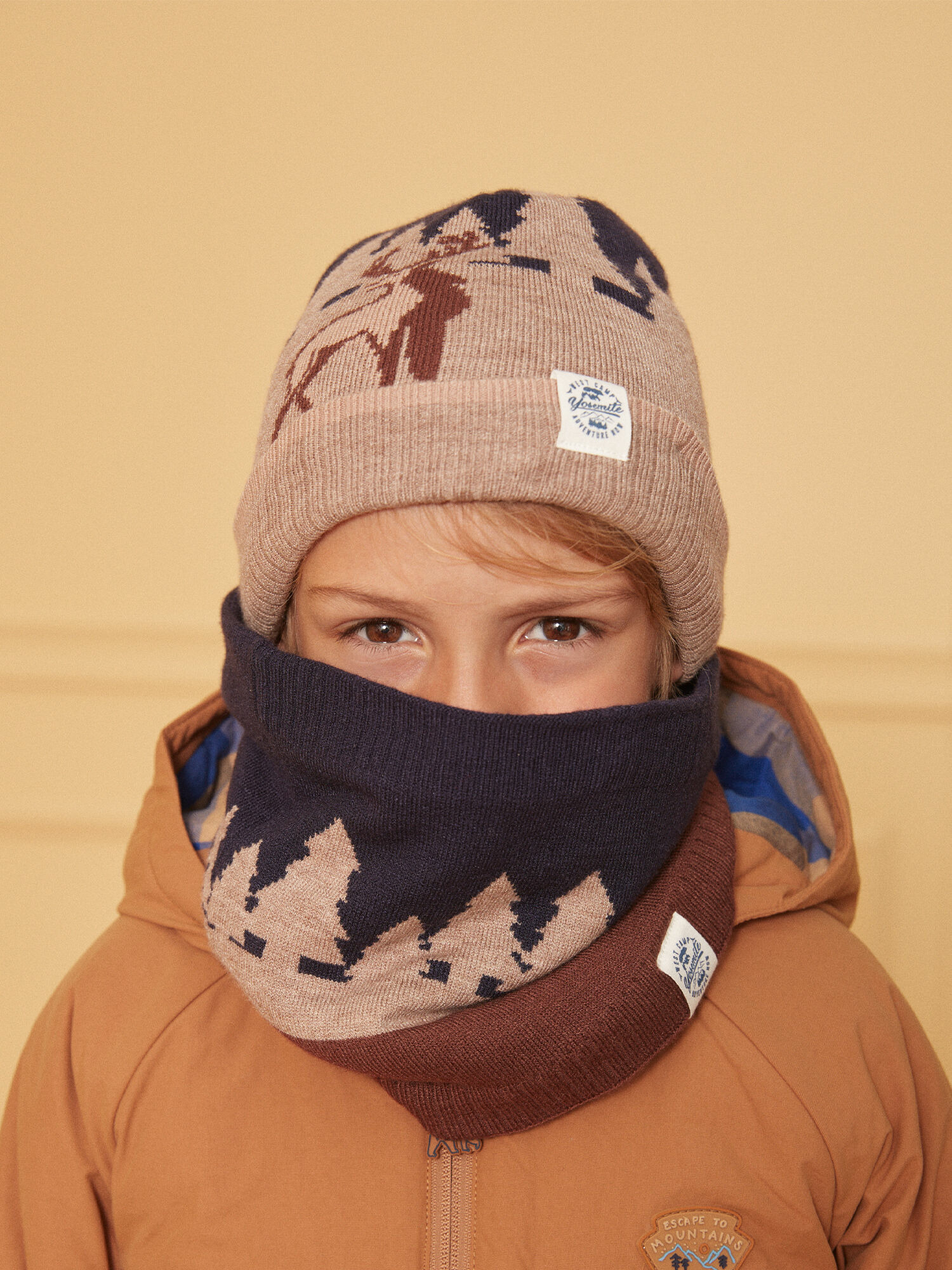 Confectionné avec un motif jacquard raffiné dans des tons marron, ce snood évoque l’aventure et la nature, parfait pour compléter un look hivernal ludique et authentique. Sa doublure en matière fine polaire procure une sensation de confort immédiate, enveloppant le cou de votre enfant sans irritation ni encombrement.