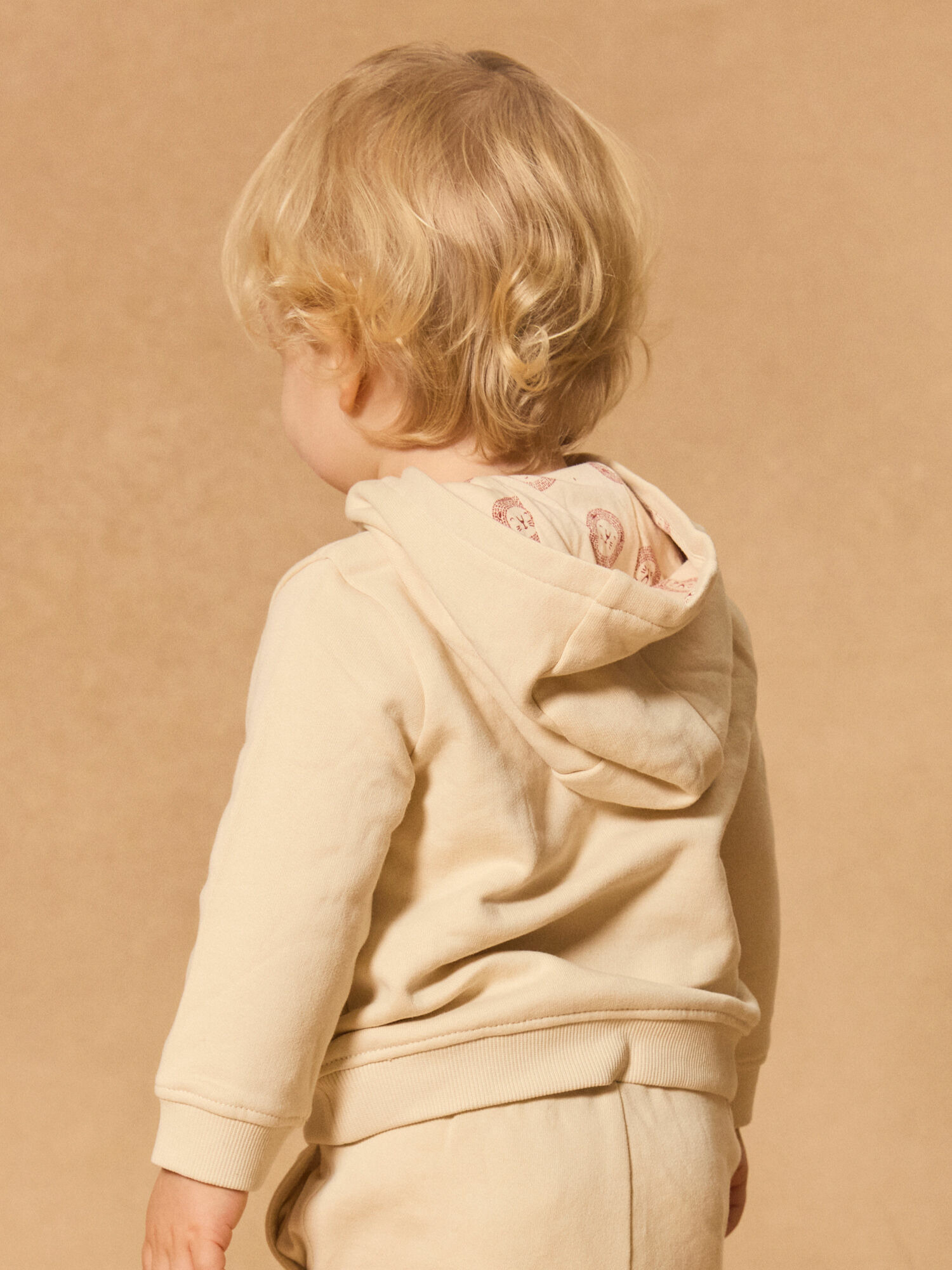 Sweat à capuche vanille, poche kangourou avec visage d’animal brodé et oreilles en 3D, doublure capuche imprimé lion marron, ouverture avant par boutons à pression. Référence : MAADRIEN / 25E1BG71JGH114. Ce produit fait partie de la Terre de Chardons, un engagement pour des qualités et caractéristiques environnementales responsables.