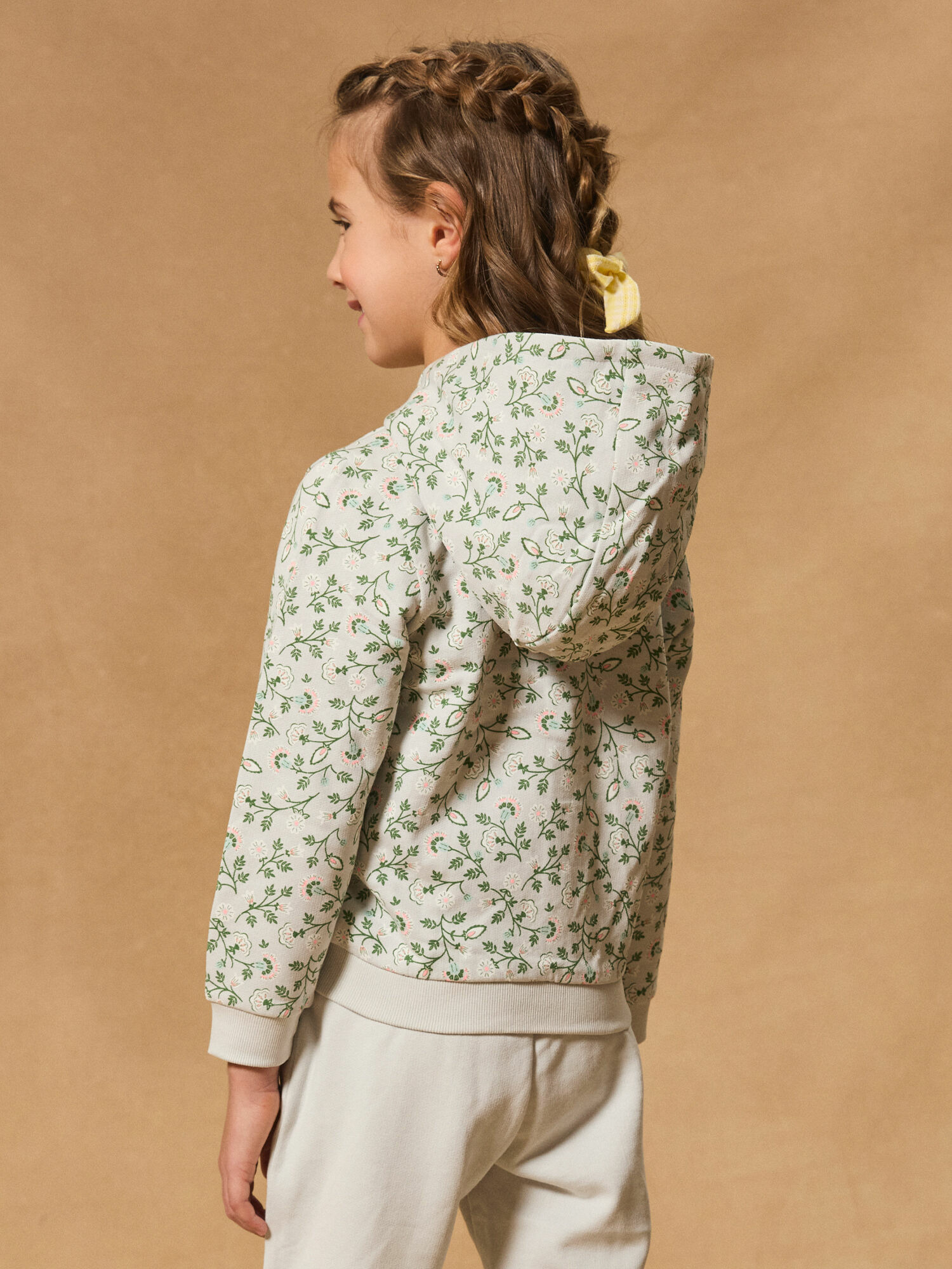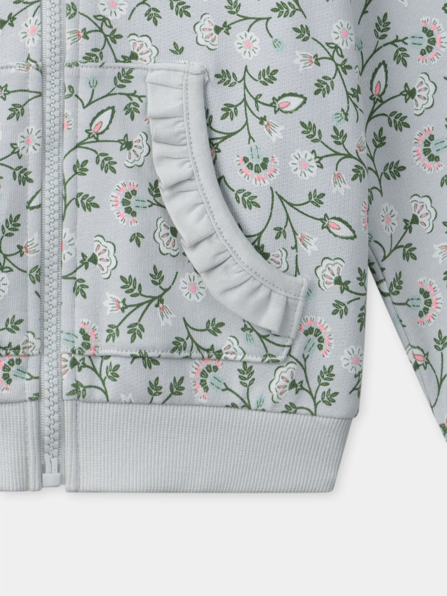 Référence : MIXVIETTE / 25E2PF51JGHC242. Sweat à capuche zippé vert d'eau avec motifs fleuris, deux poches avant. Produit issu de la collection Mix Major. Pour plus d’informations sur ses qualités et caractéristiques environnementales, consultez la fiche produit dédiée.