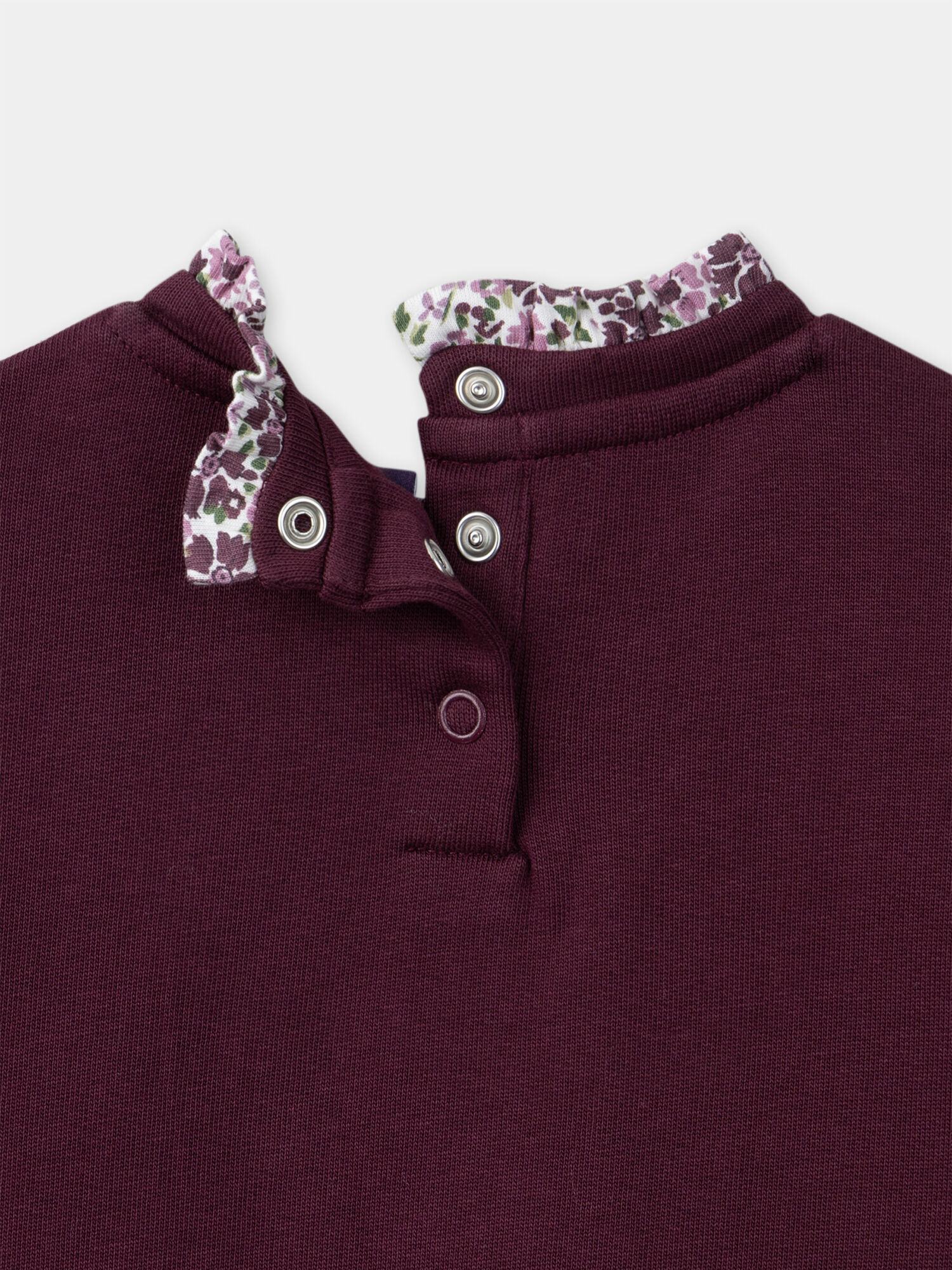 Disponible en taille 5 ans, ce sweat arbore une encolure à mini volants fleurs et une écriture en sequins. Référence produit : LUSWETTE / 24H2PFM1SWE711.