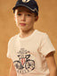 Confectionné dans un coton doux et respirant, ce T-shirt allie confort et liberté de mouvement. Son imprimé vélo, graphique et tendance, apporte une touche ludique et sportive à la tenue de votre enfant, idéale pour les journées actives ou les sorties en famille. Facile à assortir, il s’intègre parfaitement dans une garde-robe casual et colorée.