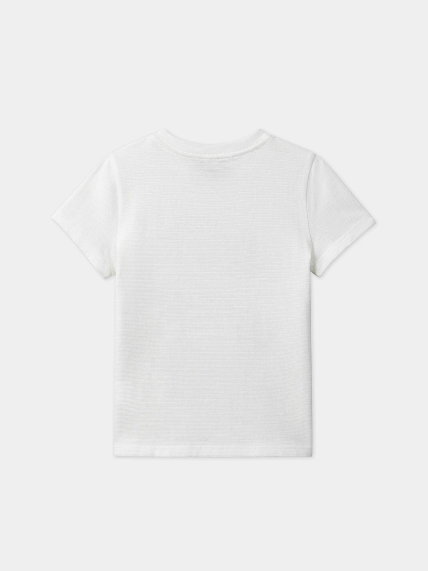 Le t-shirt présente un lettrage et un imprimé voiture sur l’avant, avec des détails holographiques et en relief pour un rendu texturé et lumineux. Le bord-côte au col est contrasté, renforçant l’aspect moderne et sportif de la pièce. Référence produit : MLOTICHAGE / 25E3PGP1TMC000.