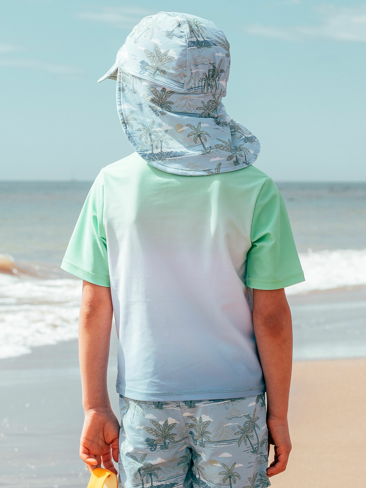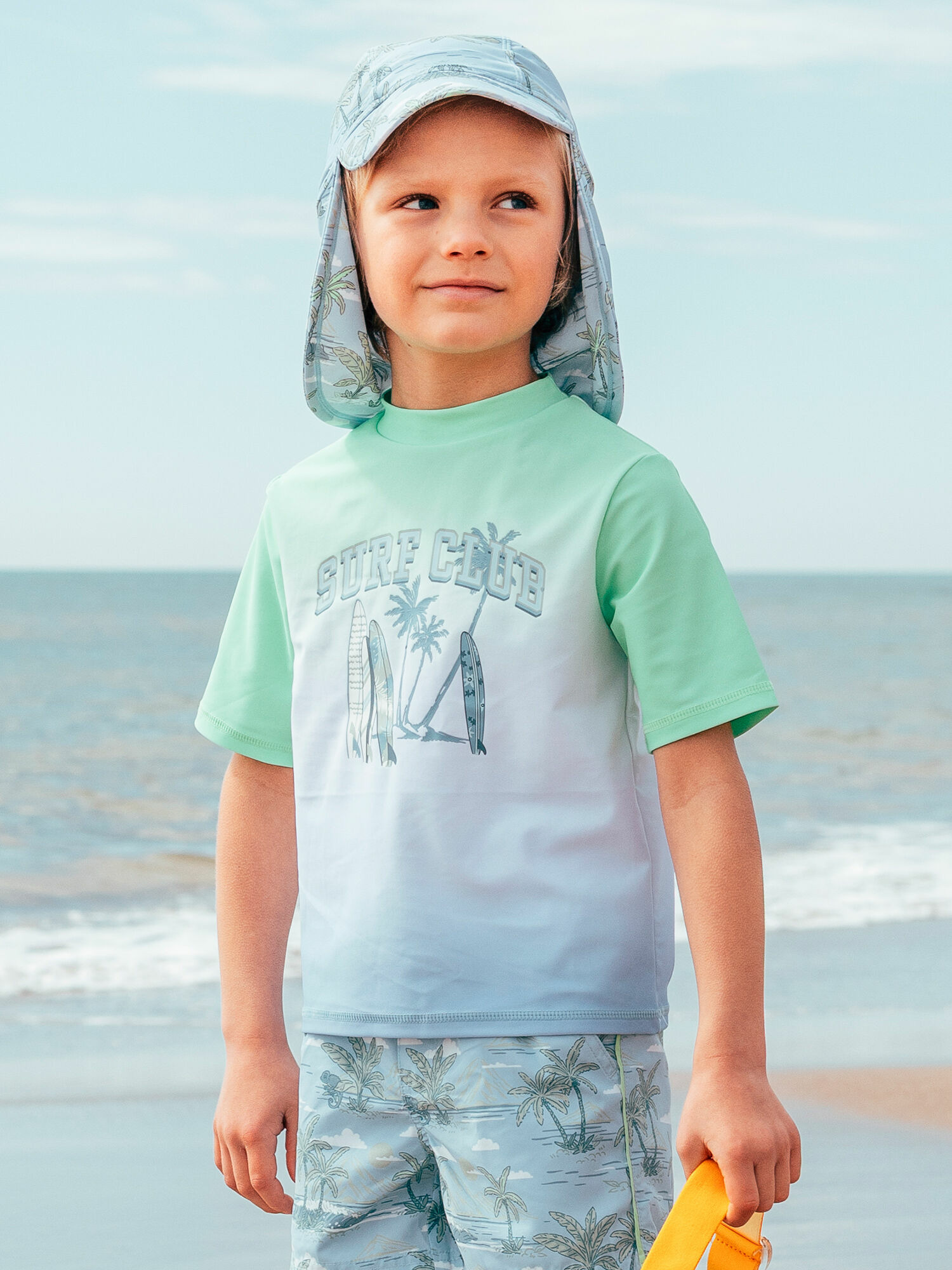 Conçu pour allier confort et performance, ce T-shirt arbore un dégradé vert néon, blanc et bleu ciel rehaussé d’une impression surf sur le devant. Ses manches courtes offrent une liberté de mouvement idéale pour toutes vos activités aquatiques. Associez-le facilement au boxer MRUCAMAGE ou au short MRUPALMAGE pour un look coordonné et tendance.