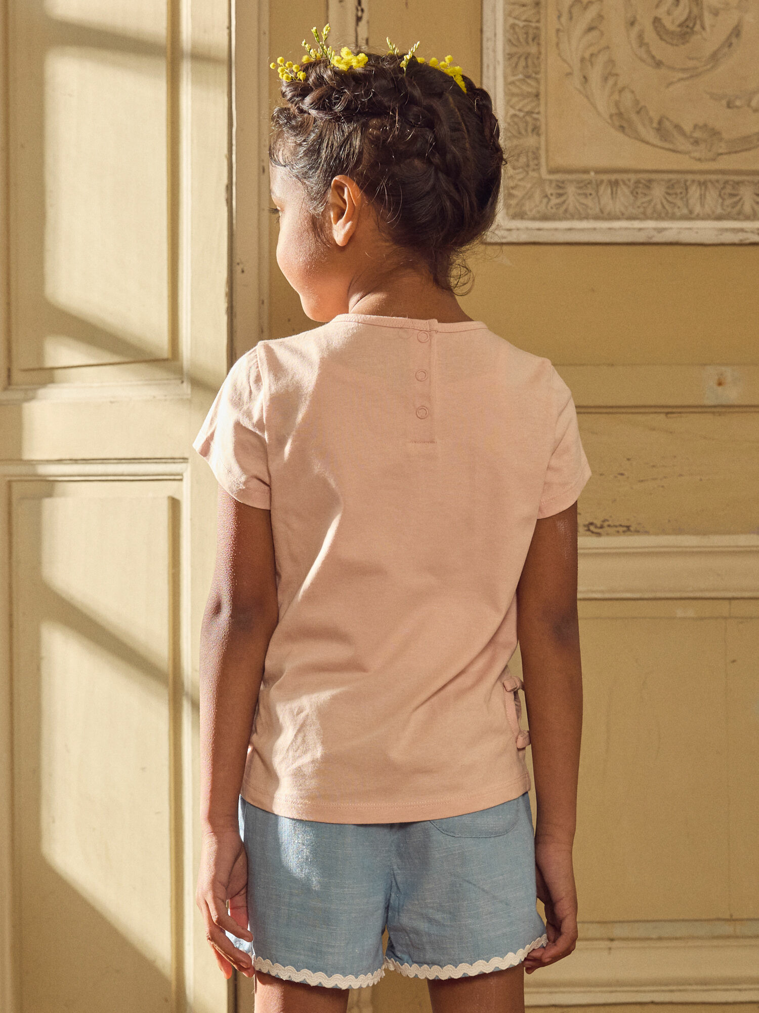 Confectionné dans un tissu léger et agréable au toucher, ce tee-shirt offre une coupe ajustée qui valorise la silhouette sans contraindre les mouvements. Son rose subtil rehausse naturellement le teint et s’associe facilement avec un jean, un short ou une jupe. Idéal pour les journées ensoleillées ou les sorties en ville, il incarne un style simple et moderne.