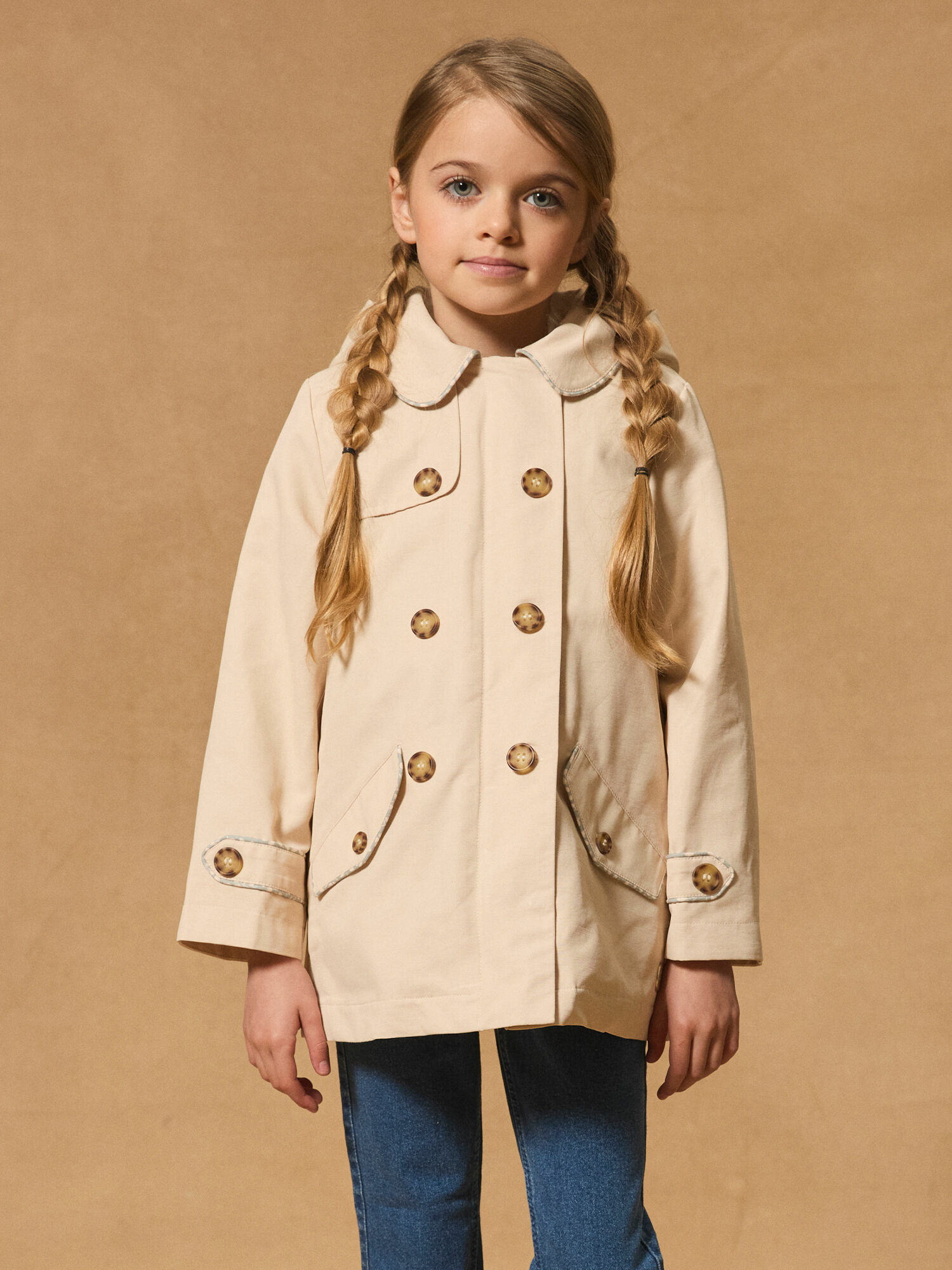 Réponse : Le trench se ferme grâce à une ouverture zippée devant, complétée par une double rangée de boutons pour un maintien sûr.