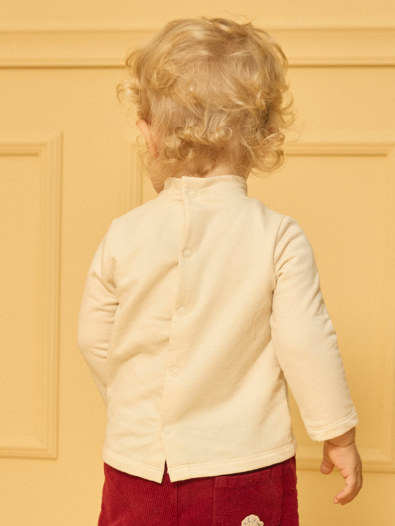 Conçu dans un tissu doux et résistant, ce T-shirt accompagne les aventures quotidiennes tout en offrant une liberté de mouvement optimale. L’ouverture au dos avec boutons à pression facilite l’habillage, un détail pratique qui simplifie la vie des parents sans sacrifier l’esthétique. Ce modèle fait partie de la collection Fruit confit à Varsovie, gage d’originalité et de qualité.