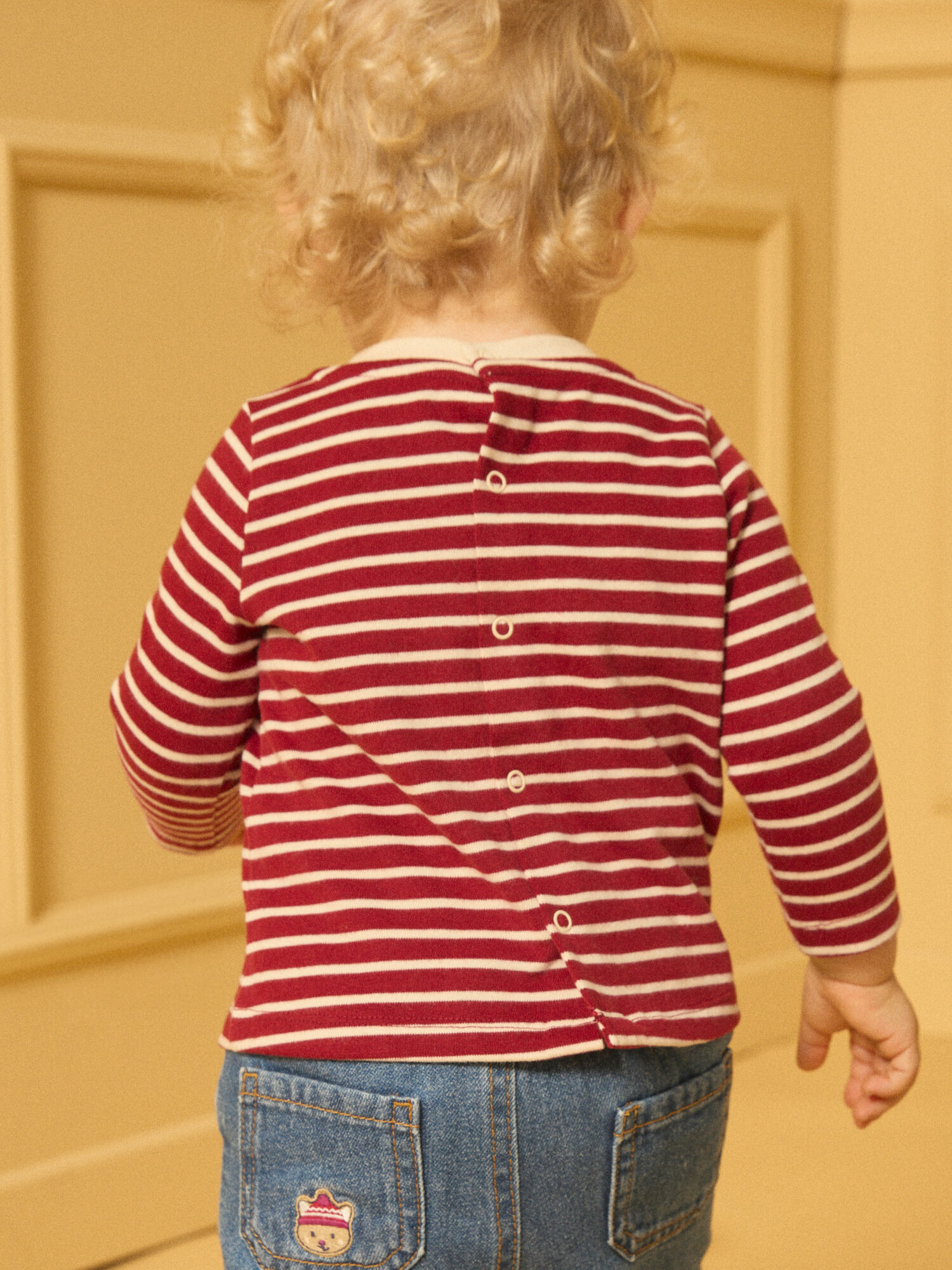 Question ? Comment s’habille ce T-shirt ? Réponse. Il s’enfile facilement grâce à son ouverture intégrale au dos par boutons à pression, pratique pour les enfants.