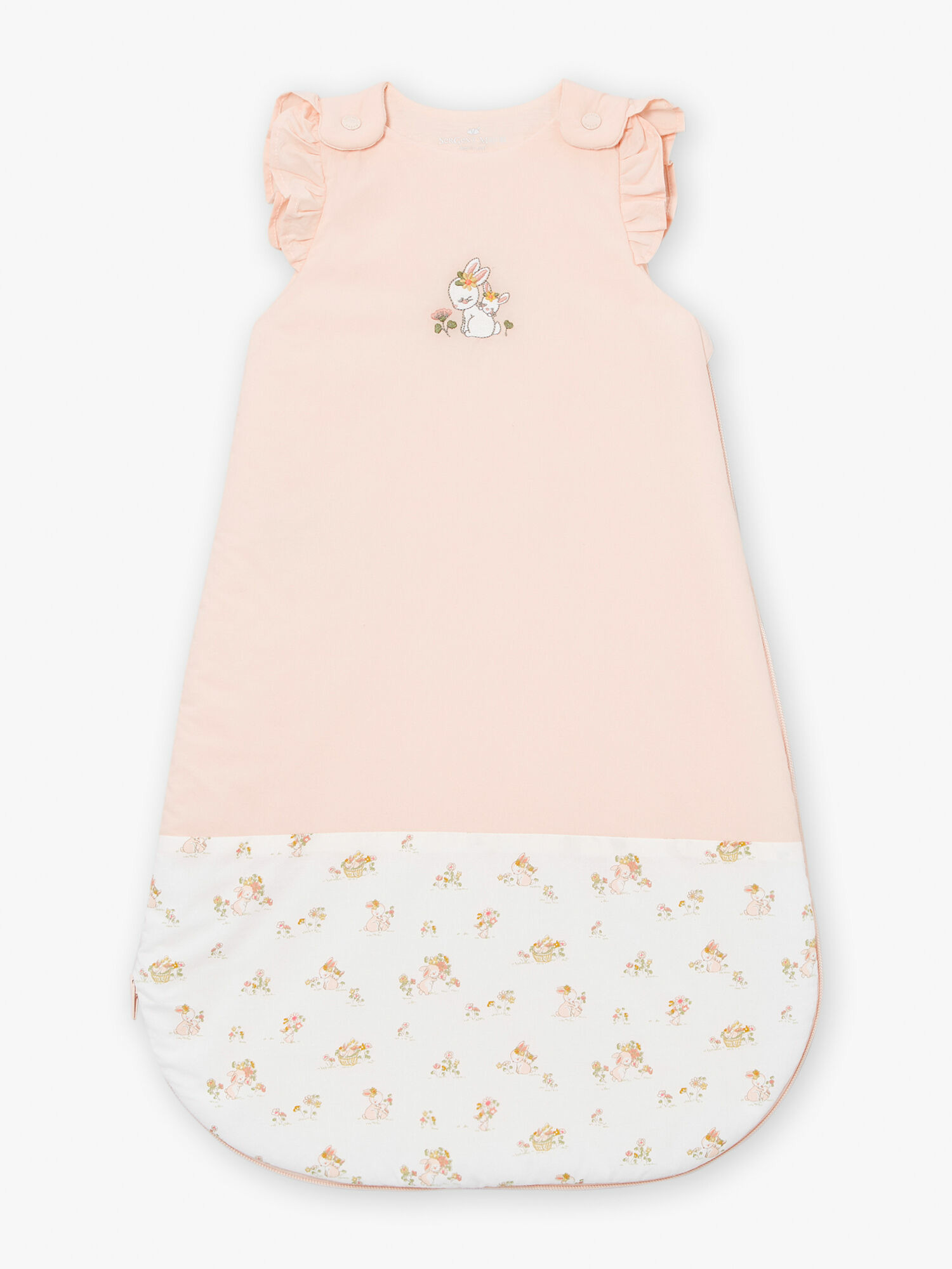 Confectionnée en popeline rose délicate, cette turbulette séduit par son col rond classique et son ouverture à boutons-pression sur les épaules, facilitant l’habillage. La broderie lapin subtilement placée à l’avant et l’imprimé lapins sur le bas apportent une touche ludique et tendre, parfaite pour les tout-petits. Issue de la Collection Naissance - Forêt Enchantée, elle incarne la poésie et la douceur de l’enfance.