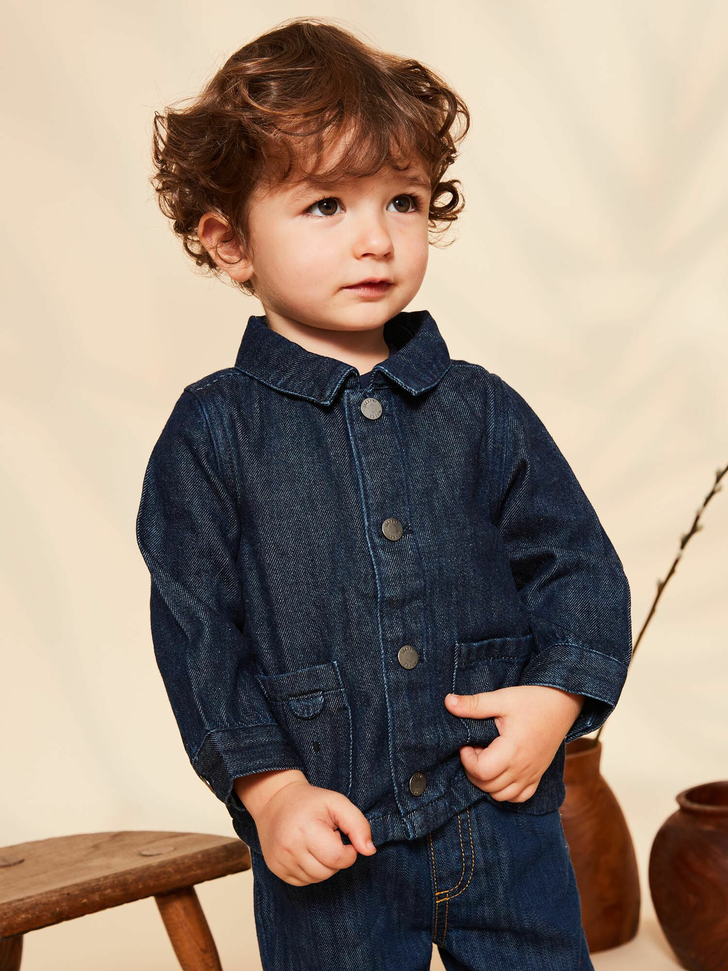 Cette veste facilite la vie des parents grâce à son ouverture à boutons-pression en métal, pratique et rapide à manipuler, même pour les plus petits. Son tissu en denim durable assure une tenue longue durée, tandis que l’intérieur en jersey procure un confort optimal tout au long de la journée.