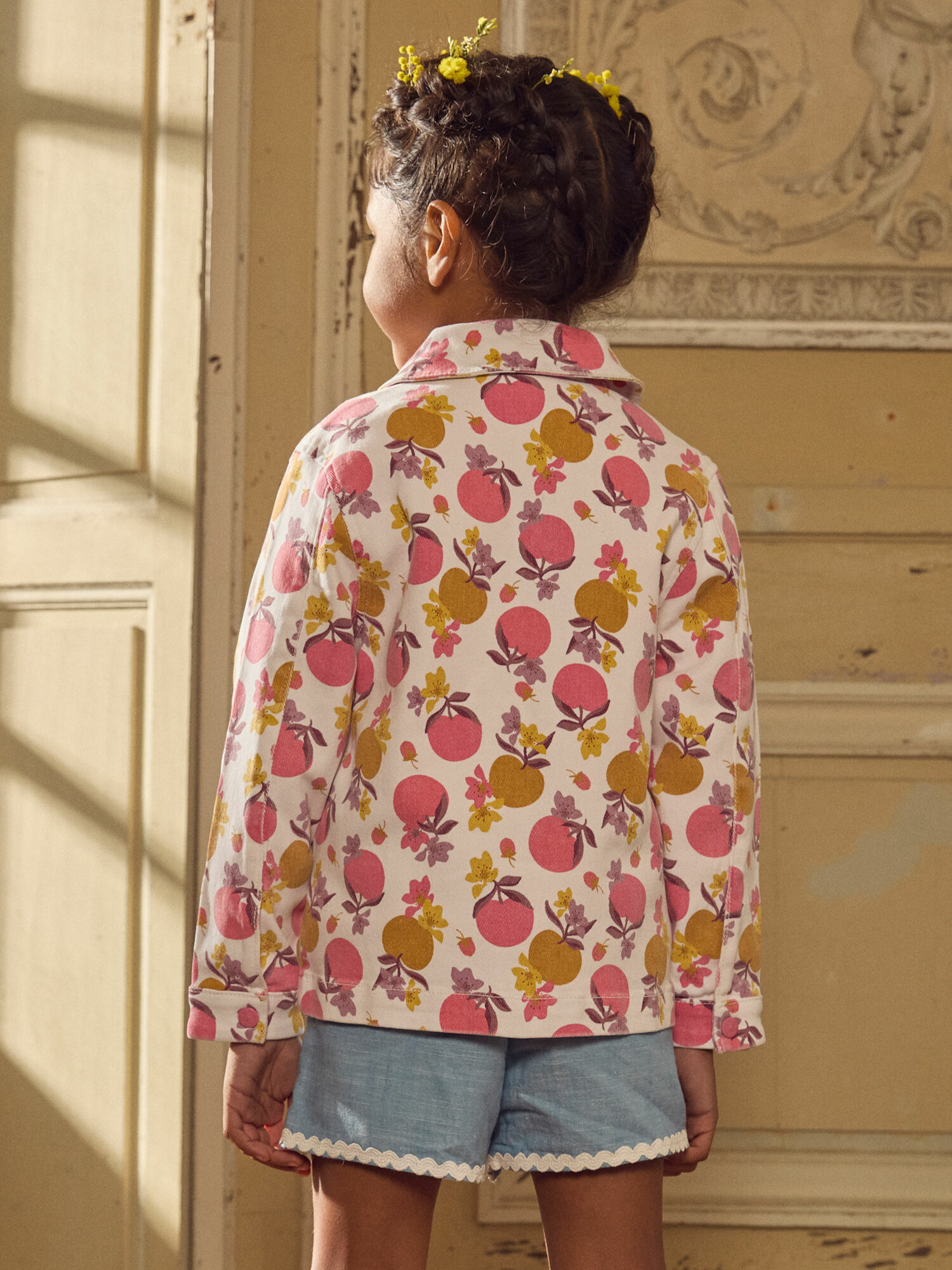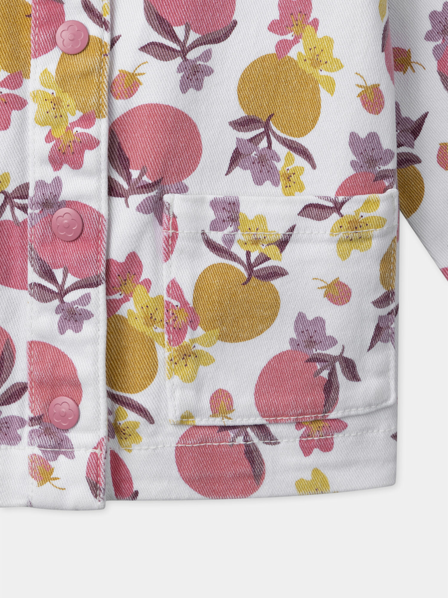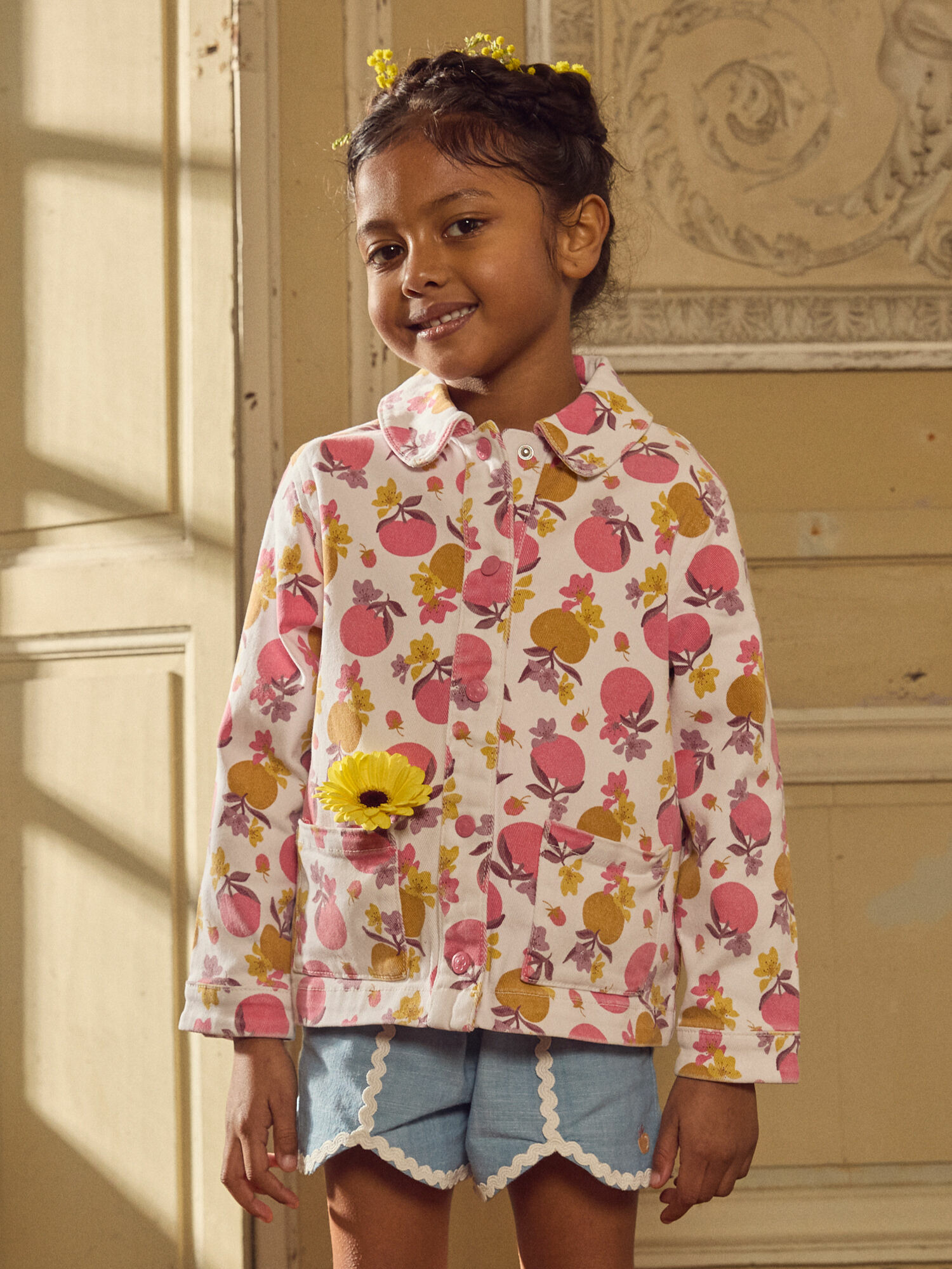 Denim robuste, imprimé pommes, deux poches avant, ouverture par boutons pressions sur le devant. Référence produit : MLAJAKETTE / 25E2PFK1VES001. Pour découvrir ses qualités environnementales, consultez la fiche produit dédiée en cliquant ICI.