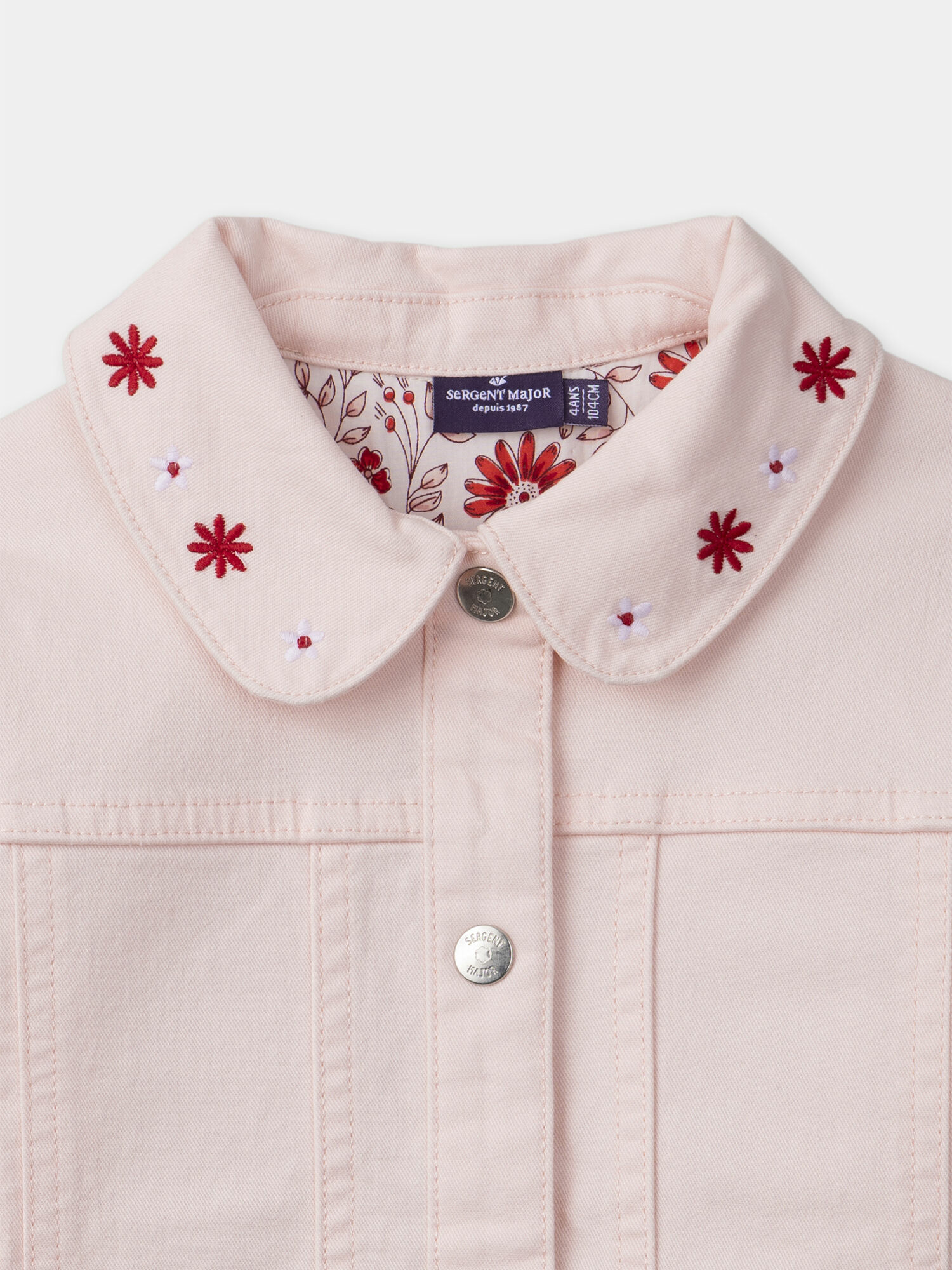 Offrez à votre petite aventurière une touche de douceur avec cette veste en jean rose signée Sergent Major. Élégante et pratique, elle accompagne toutes ses escapades avec style.