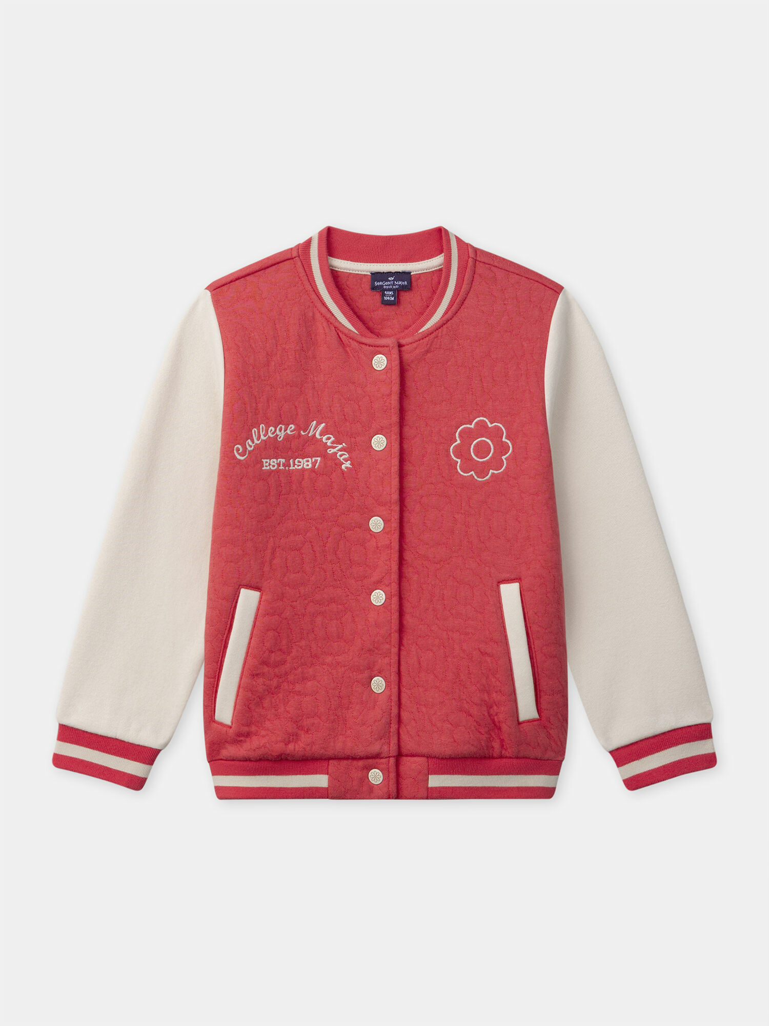 Cette veste teddy rouge corail allie énergie et douceur pour accompagner les filles dans toutes leurs aventures. Sa broderie florale discrète et ses manches longues écrues apportent une touche moderne et élégante à un classique revisité.