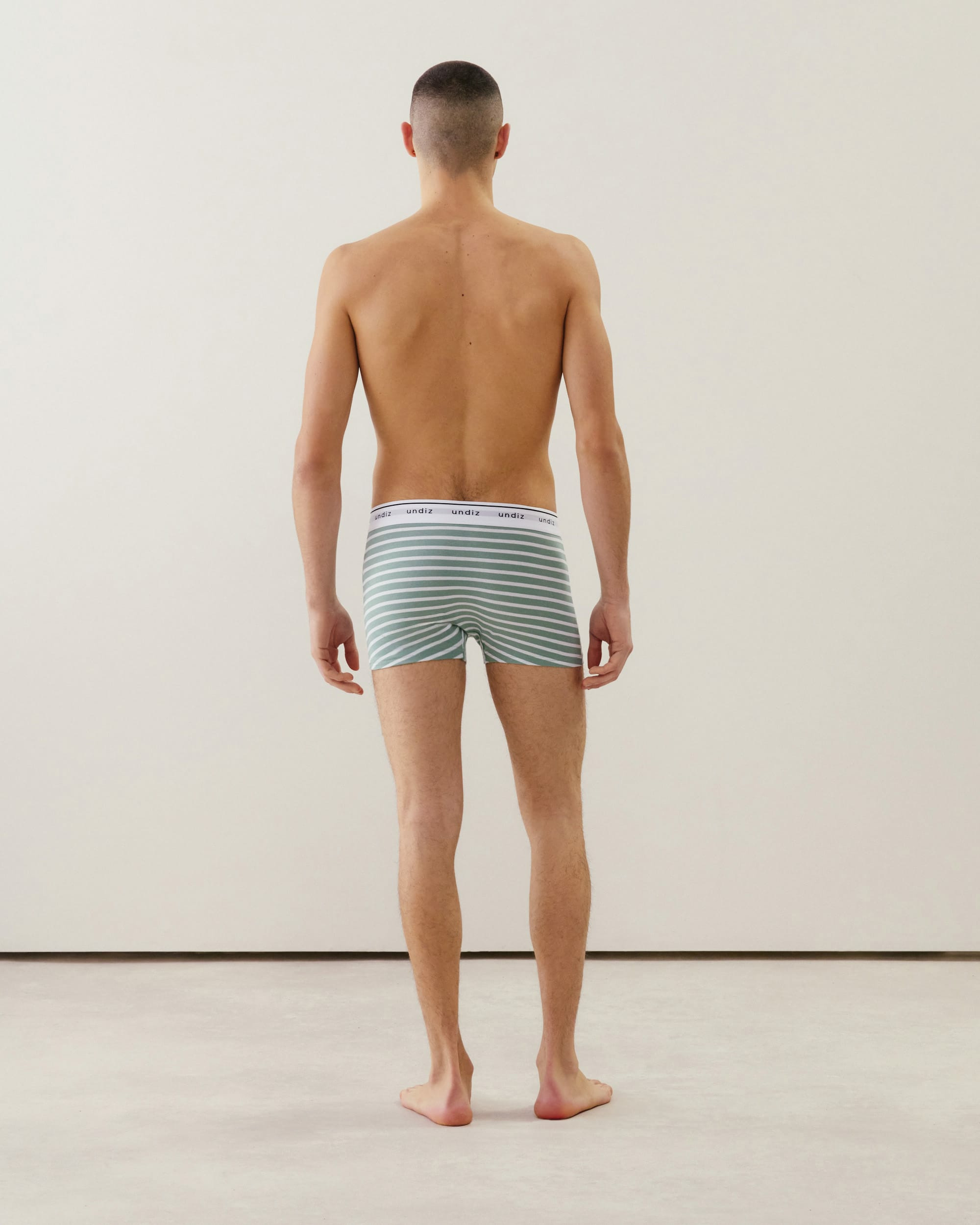 Réponse : Ce boxer à rayures est proposé dans une sélection de coloris classiques, disponibles sur la boutique Undiz.