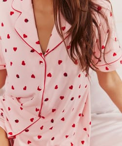 Laissez-vous séduire par la douceur et l’originalité de cette chemise en jersey côtelé signée Undiz, où motifs cœurs et coccinelles apportent une touche ludique à votre pyjama. Un équilibre parfait entre confort et style pour vos nuits et moments de détente.