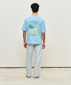 Confectionné dans une popeline de coton légère et respirante, ce pantalon offre une texture douce et agréable au toucher. Ses rayures fines apportent une touche graphique subtile, idéale pour une tenue d’intérieur qui ne sacrifie rien à l’esthétique. Sa coupe droite assure une aisance de mouvement tout en structurant la silhouette avec naturel.