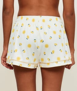 Confectionné dans un jersey côtelé doux et extensible, ce short épouse parfaitement les formes tout en offrant une liberté de mouvement optimale. Les imprimés soleils et citrons apportent une note ludique et solaire, idéale pour égayer vos moments de repos. Sa coupe courte et ajustée met en valeur vos jambes sans sacrifier votre aisance.