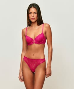 Ce soutien-gorge corbeille est doté de bretelles réglables et d’une fermeture dos classique à agrafes. La dentelle est extensible, s’adaptant parfaitement à votre morphologie pour un ajustement personnalisé.