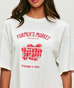 Affichez un style décontracté et affirmé avec ce T-shirt manches courtes oversize en jersey imprimé "Farmer's market". Une pièce qui allie confort et originalité pour vos looks du quotidien.