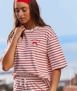 Affichez un style audacieux avec ce T-shirt marinière en jersey épais, rehaussé d’une broderie Hello Kitty subtile et tendance. Une pièce incontournable pour allier confort et originalité au quotidien.