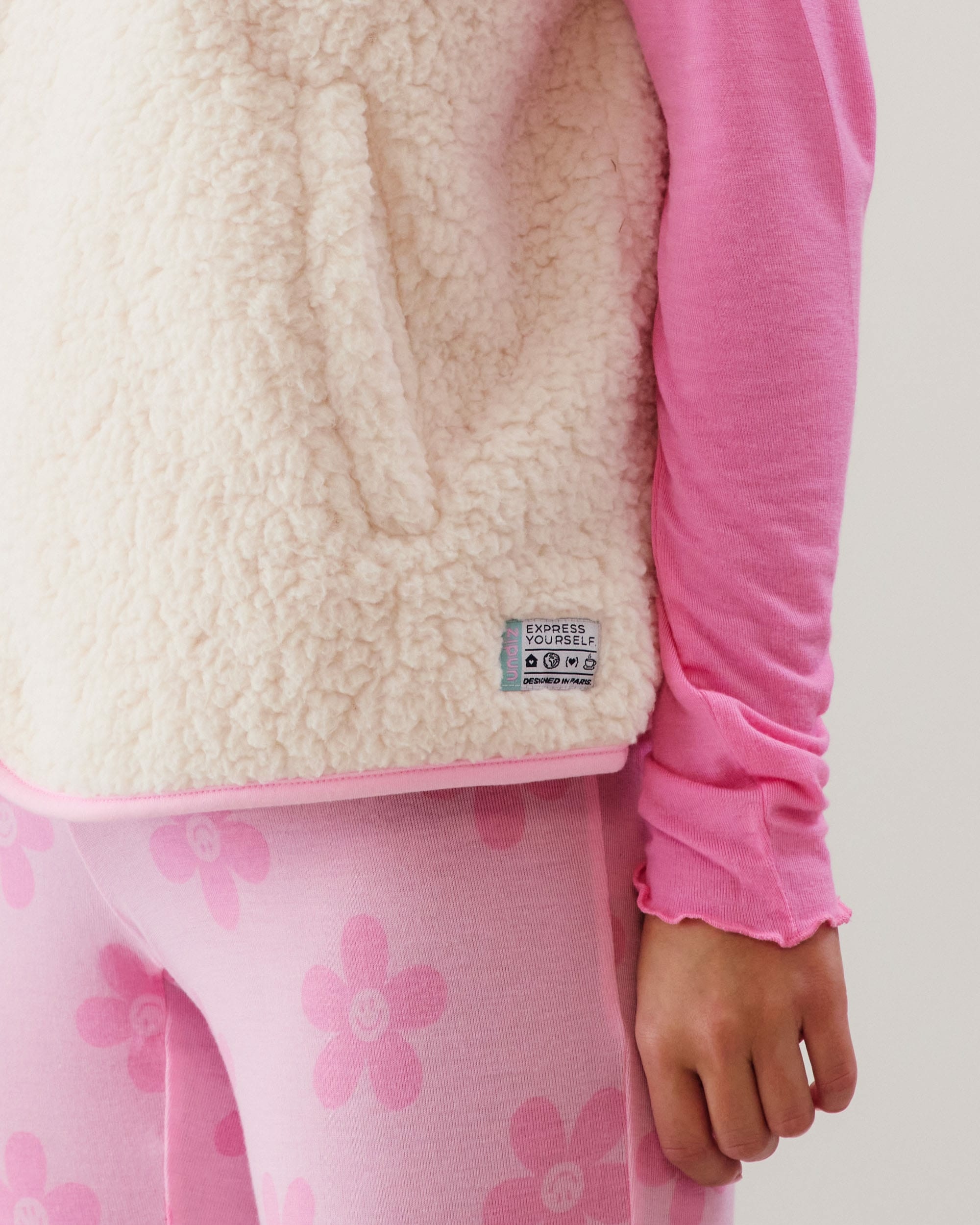 Adoptez la douceur et la chaleur avec cette veste sans manches en sherpa écru, un indispensable pour vos moments de détente. Undiz signe une pièce confortable et stylée, parfaite pour vos tenues d’intérieur.
